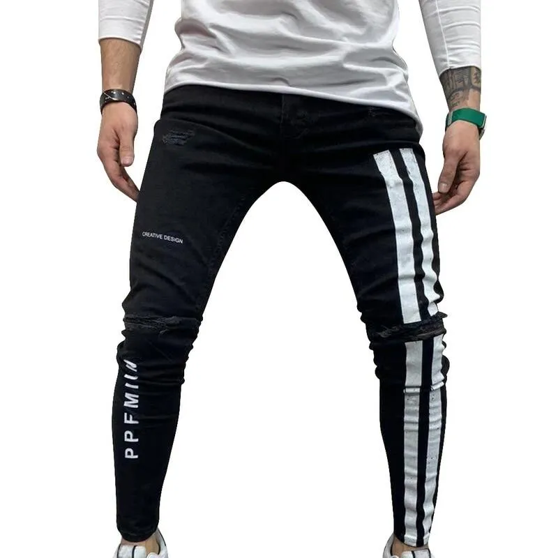 jeans con strisce laterali uomo