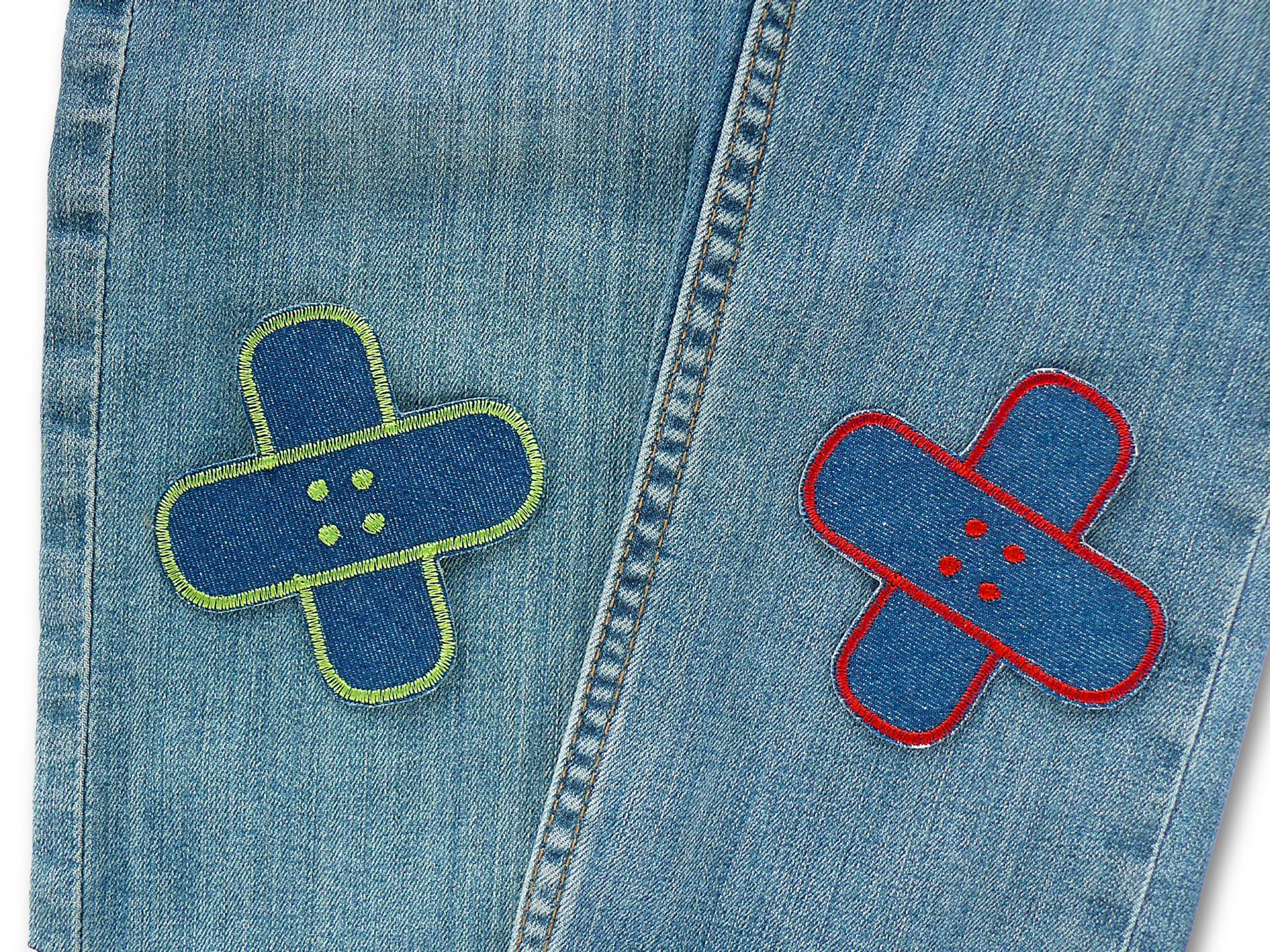 jeans con toppe colorate
