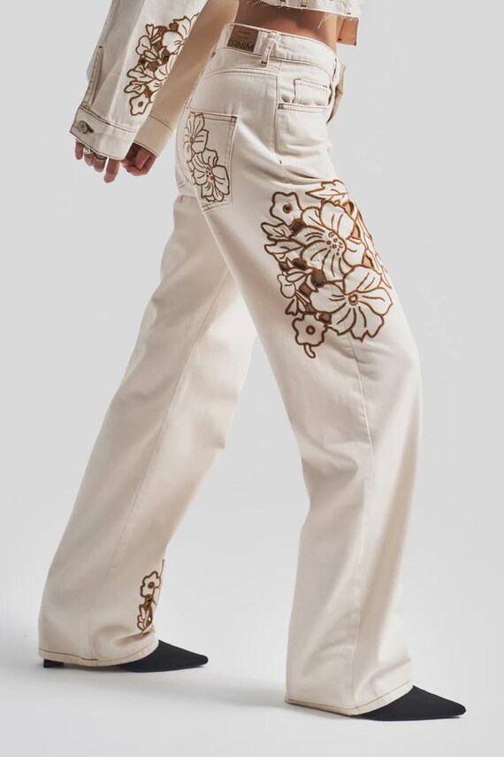 jeans crema donna
