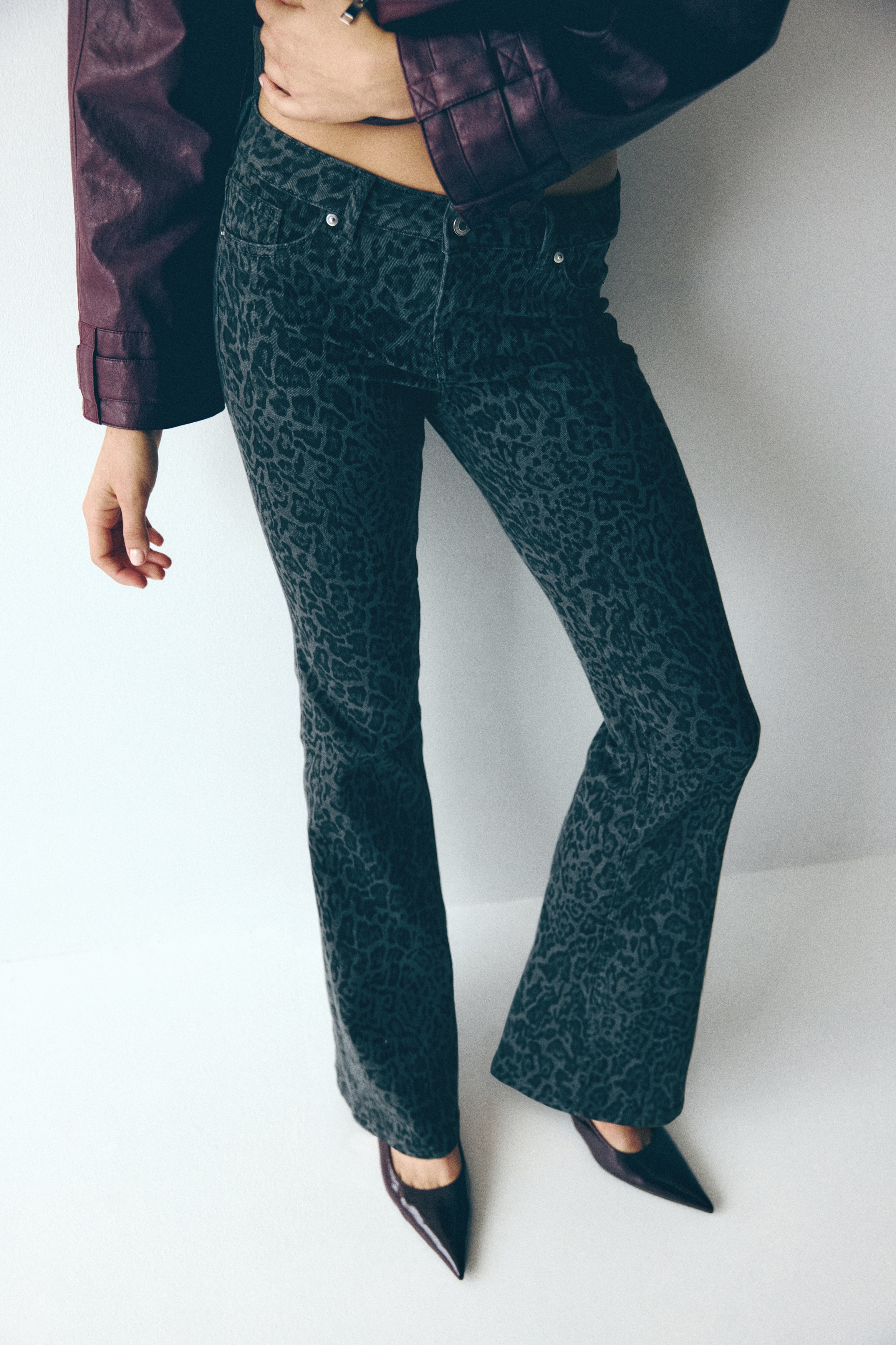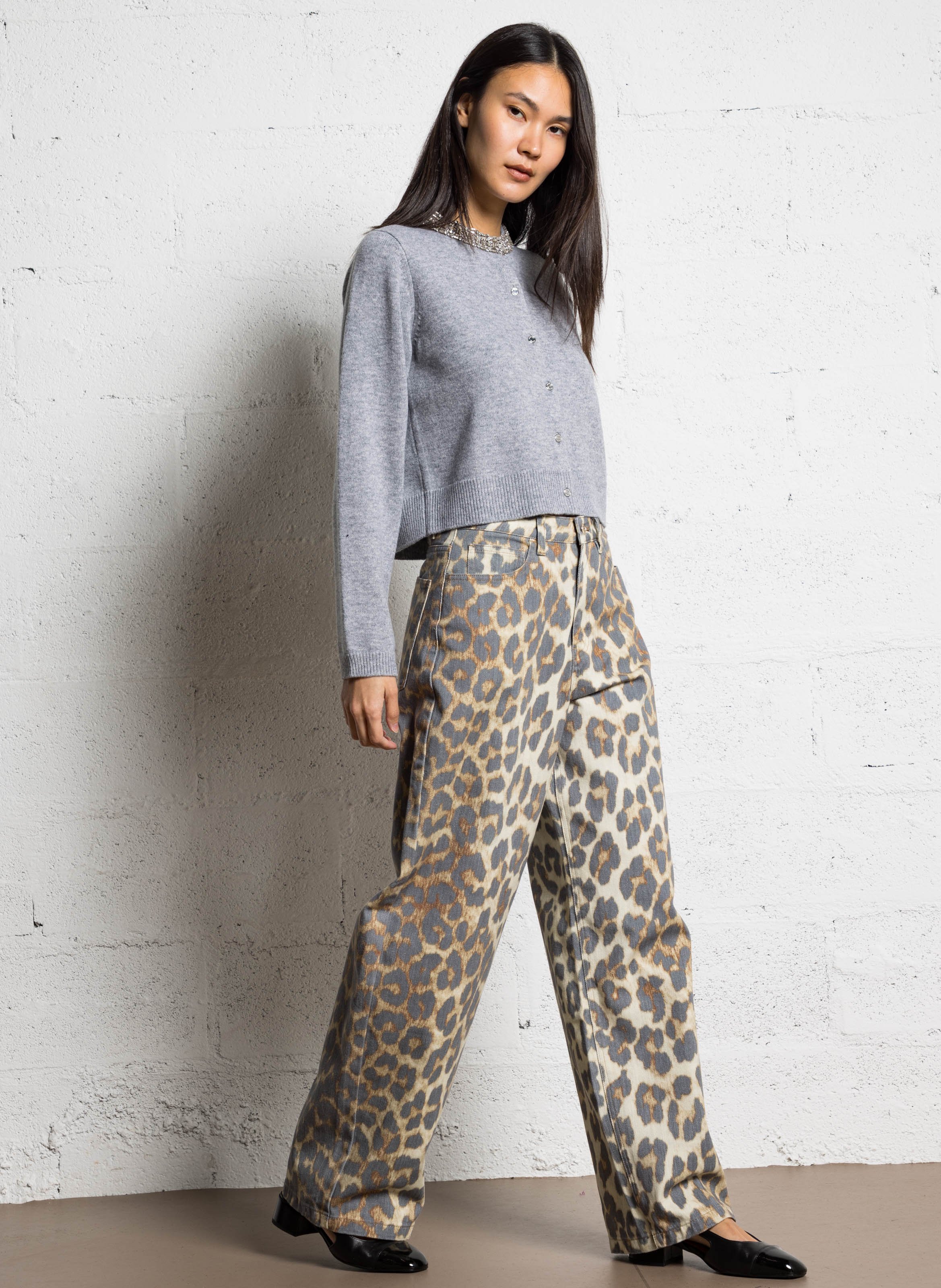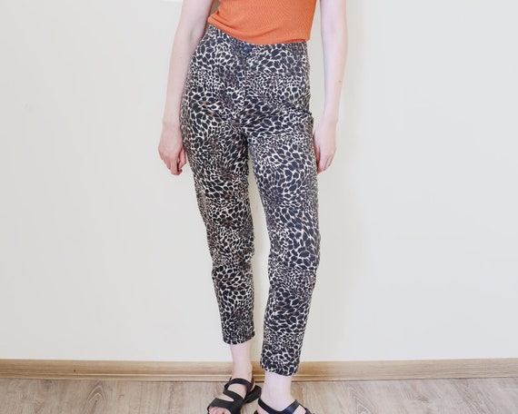 jeans leopardati vita alta