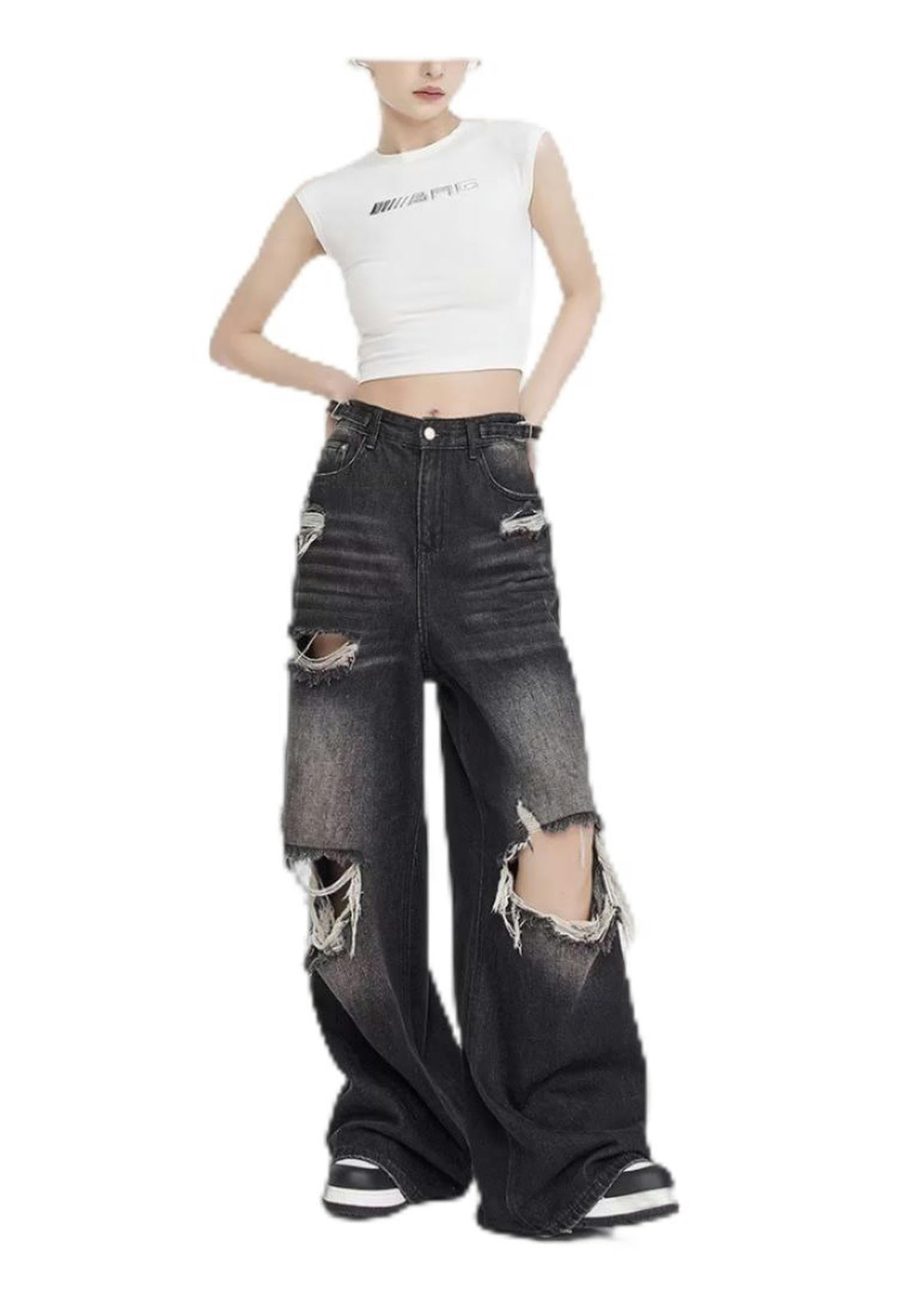 jeans neri larghi strappati