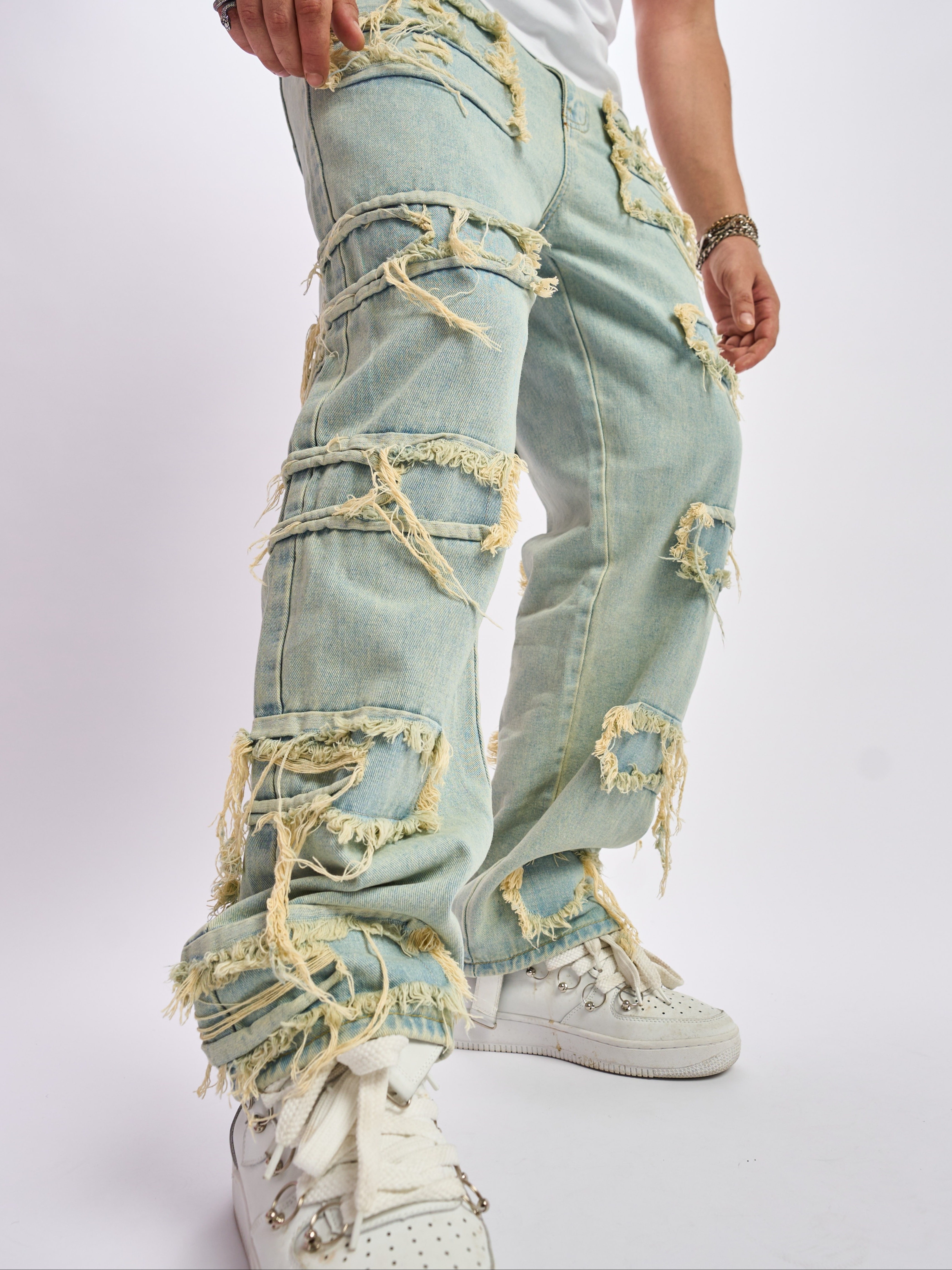 jeans verdi strappati