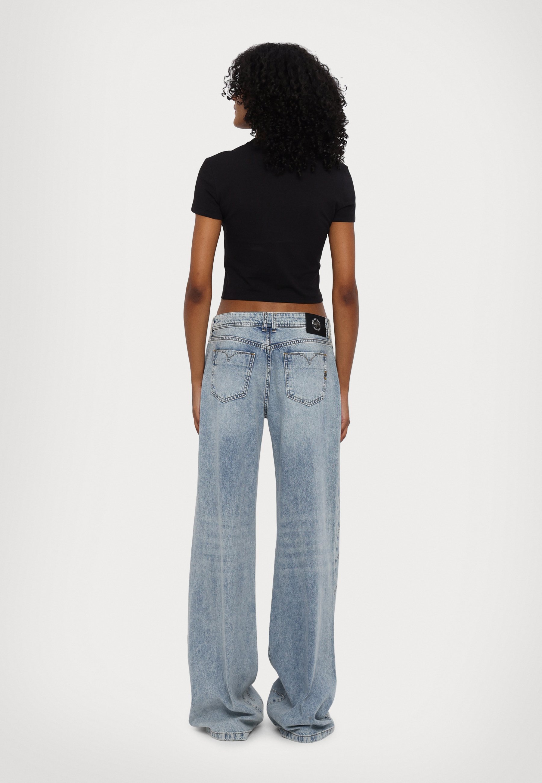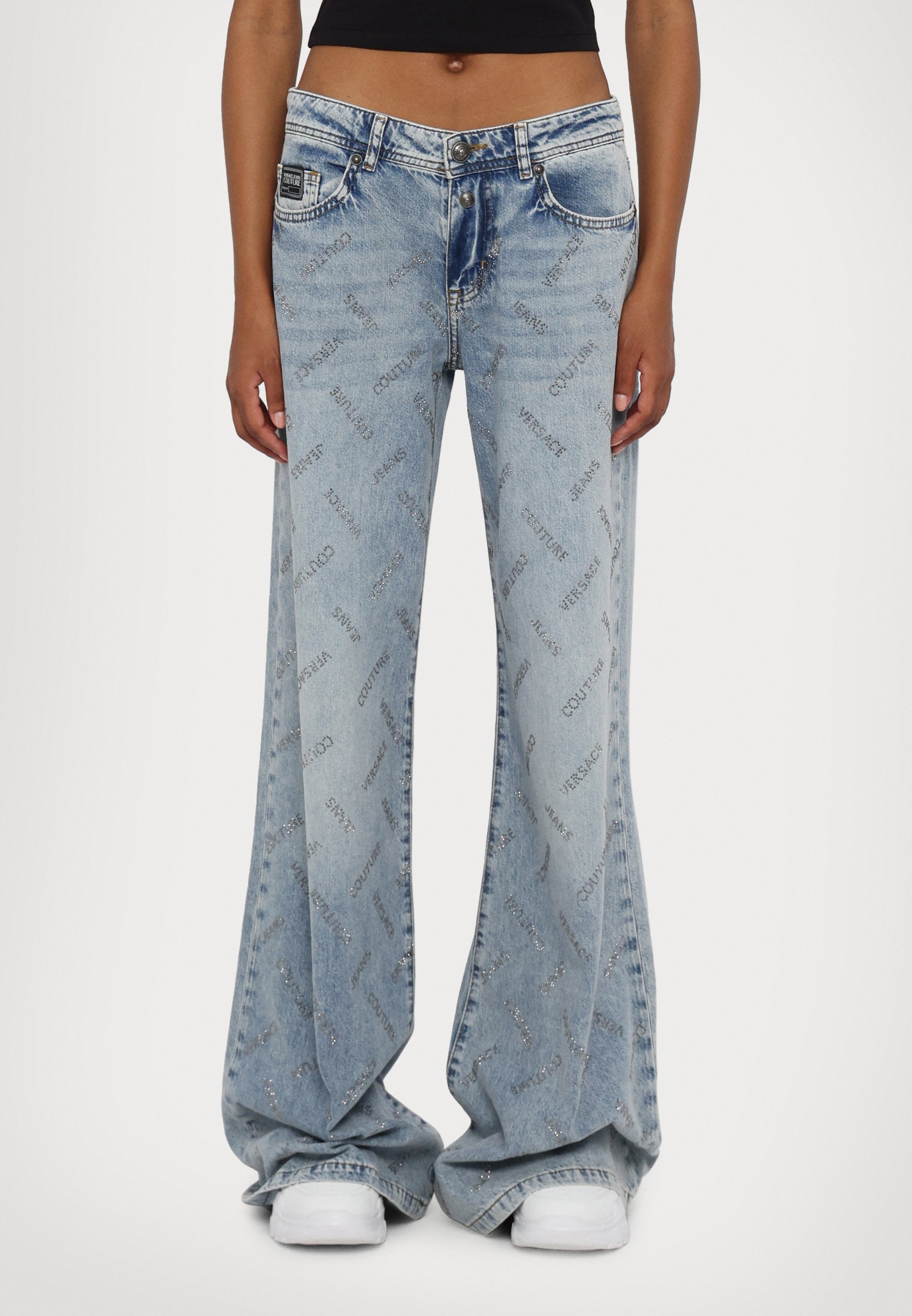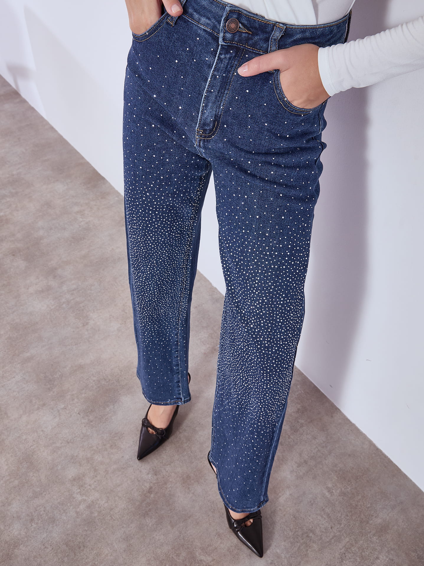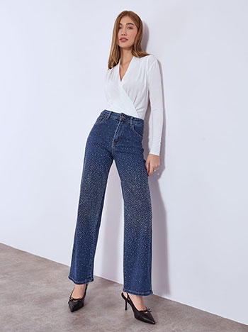 jeans wide leg low waist strass