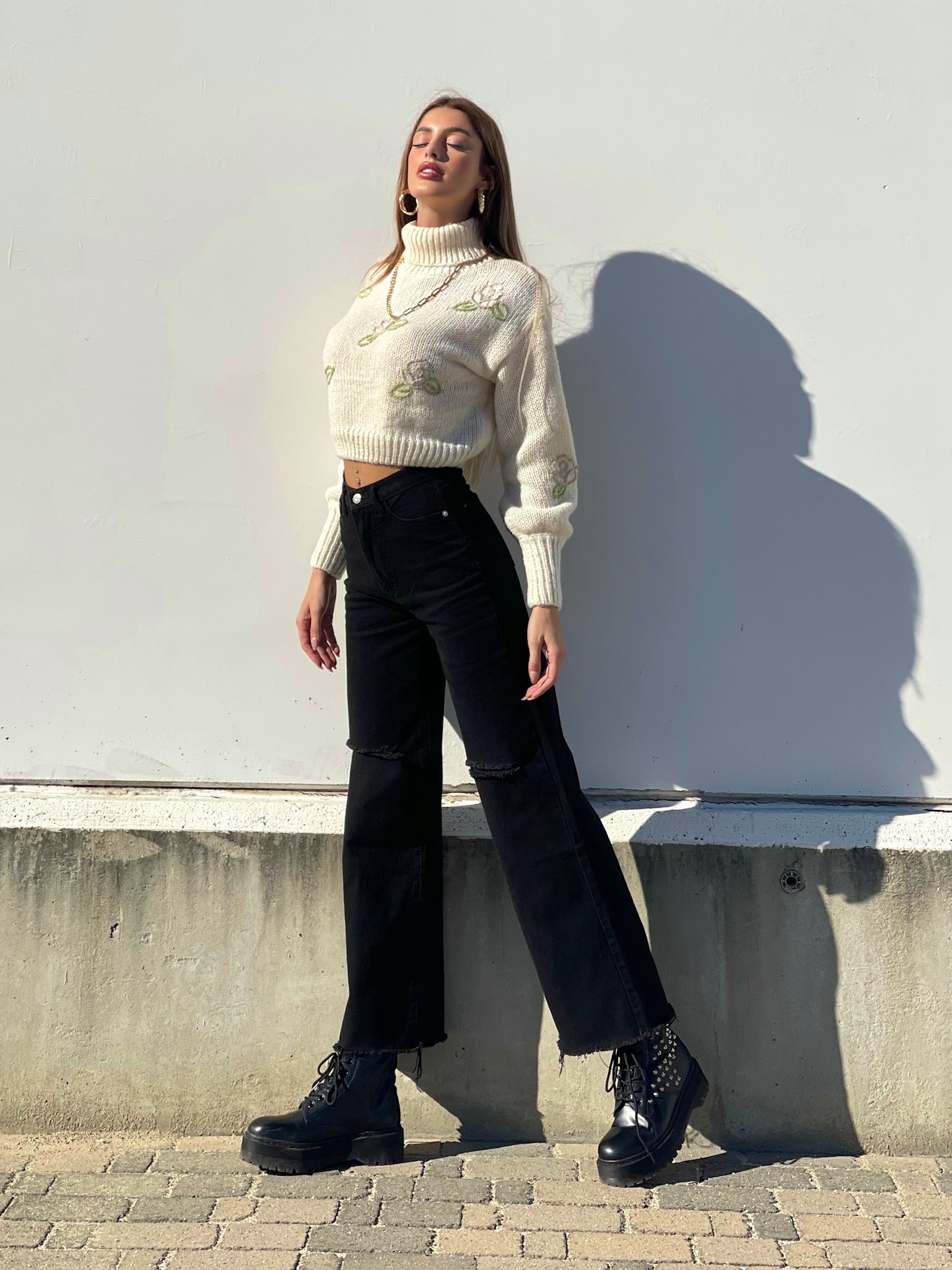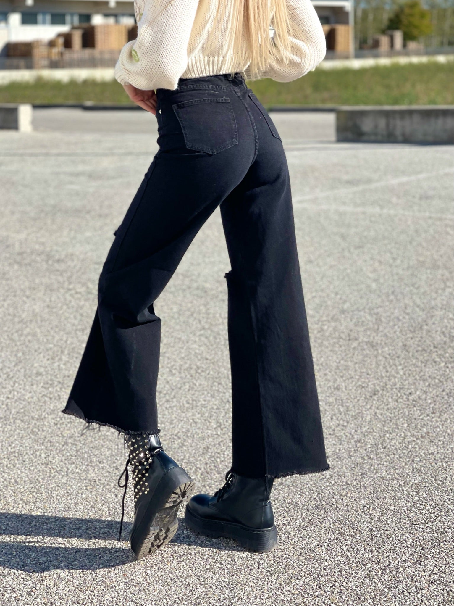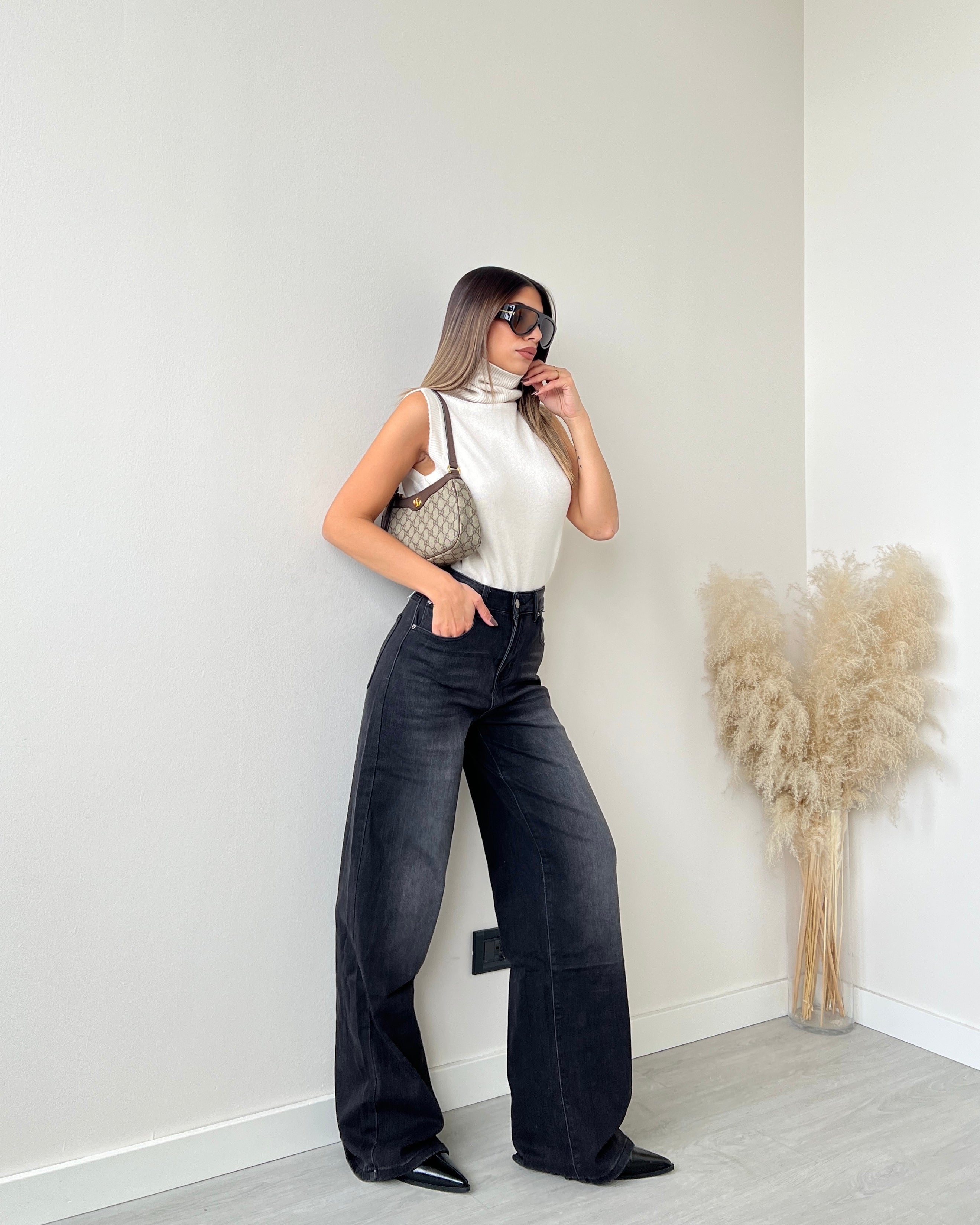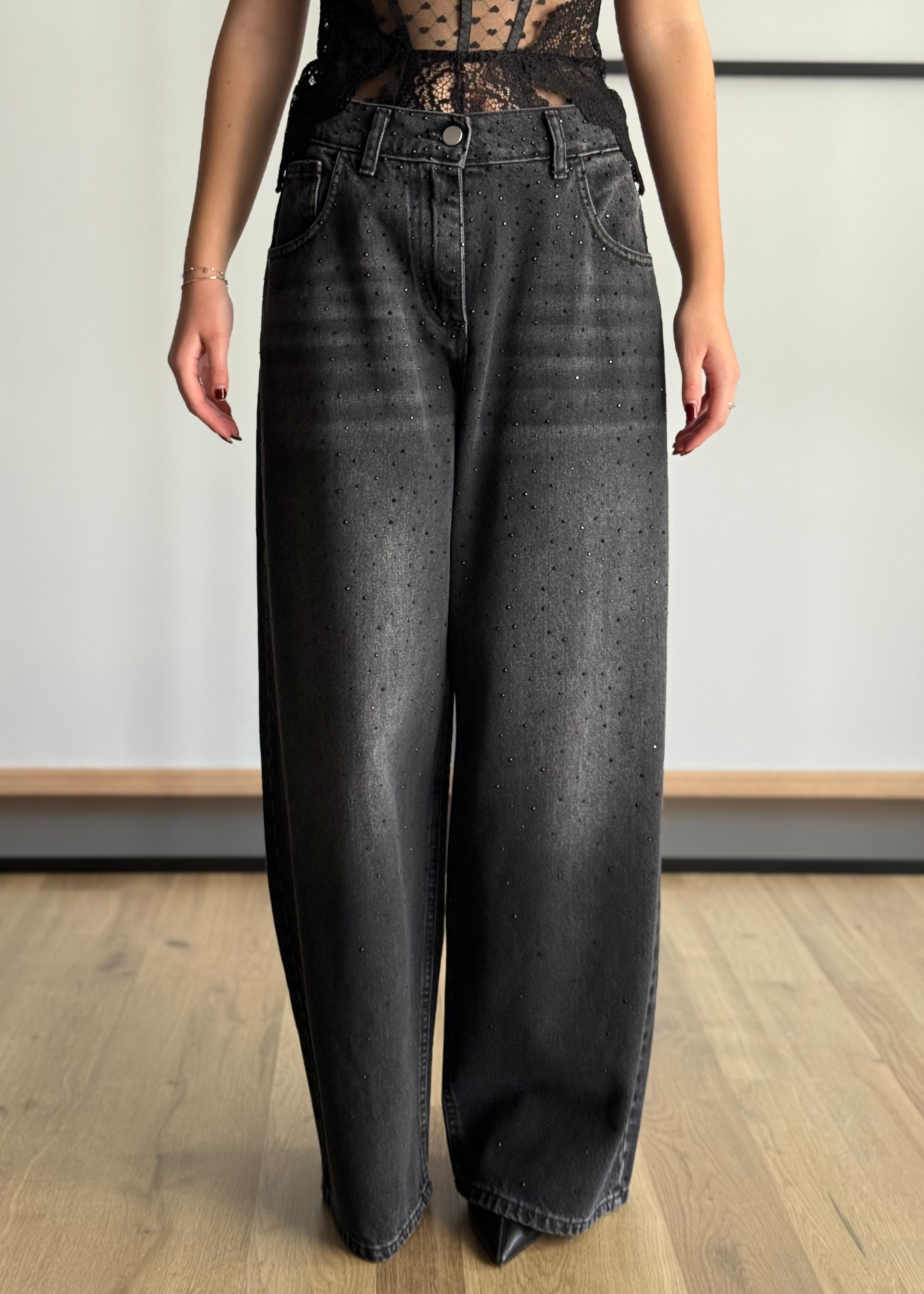 jeans wide leg nero