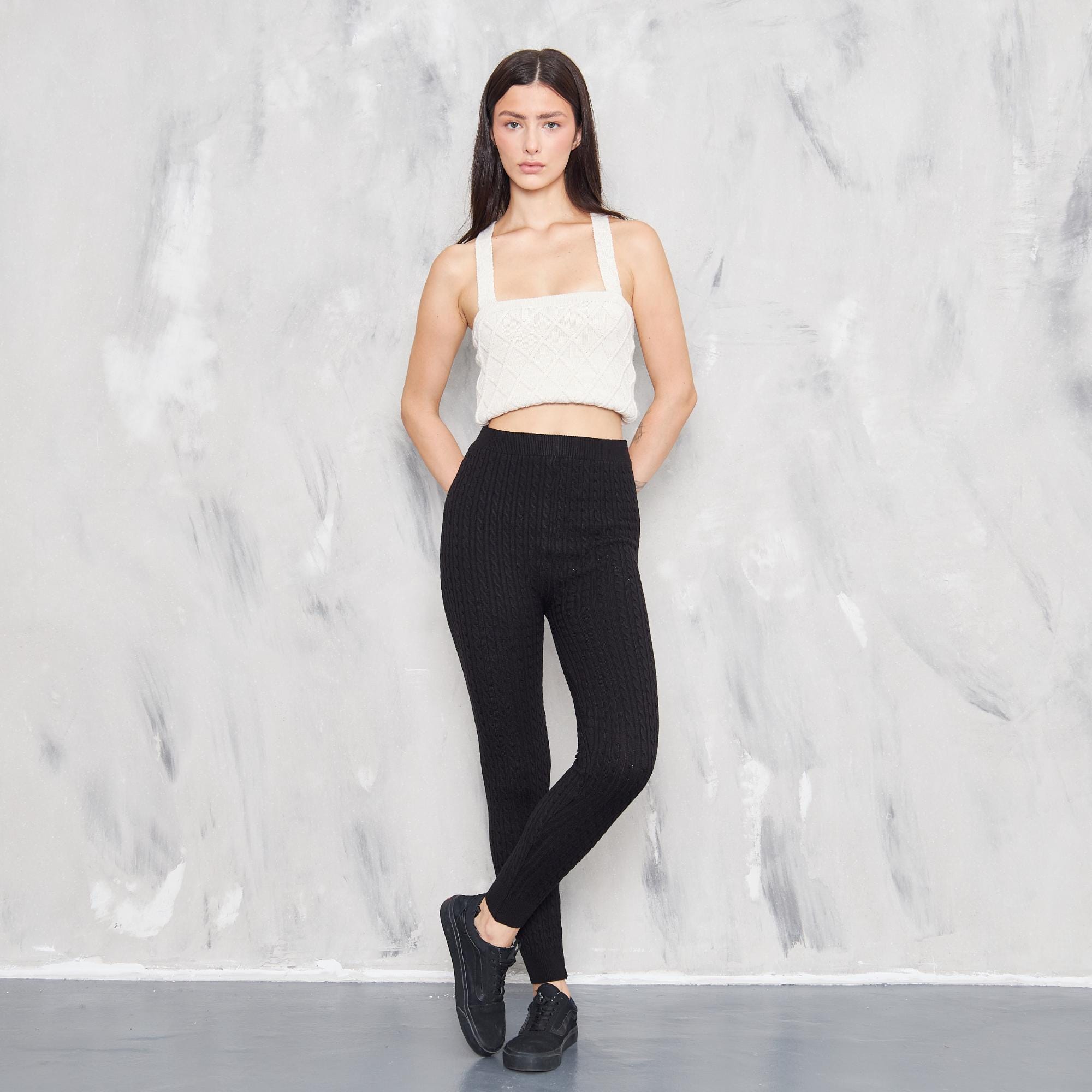 leggins in maglia a trecce
