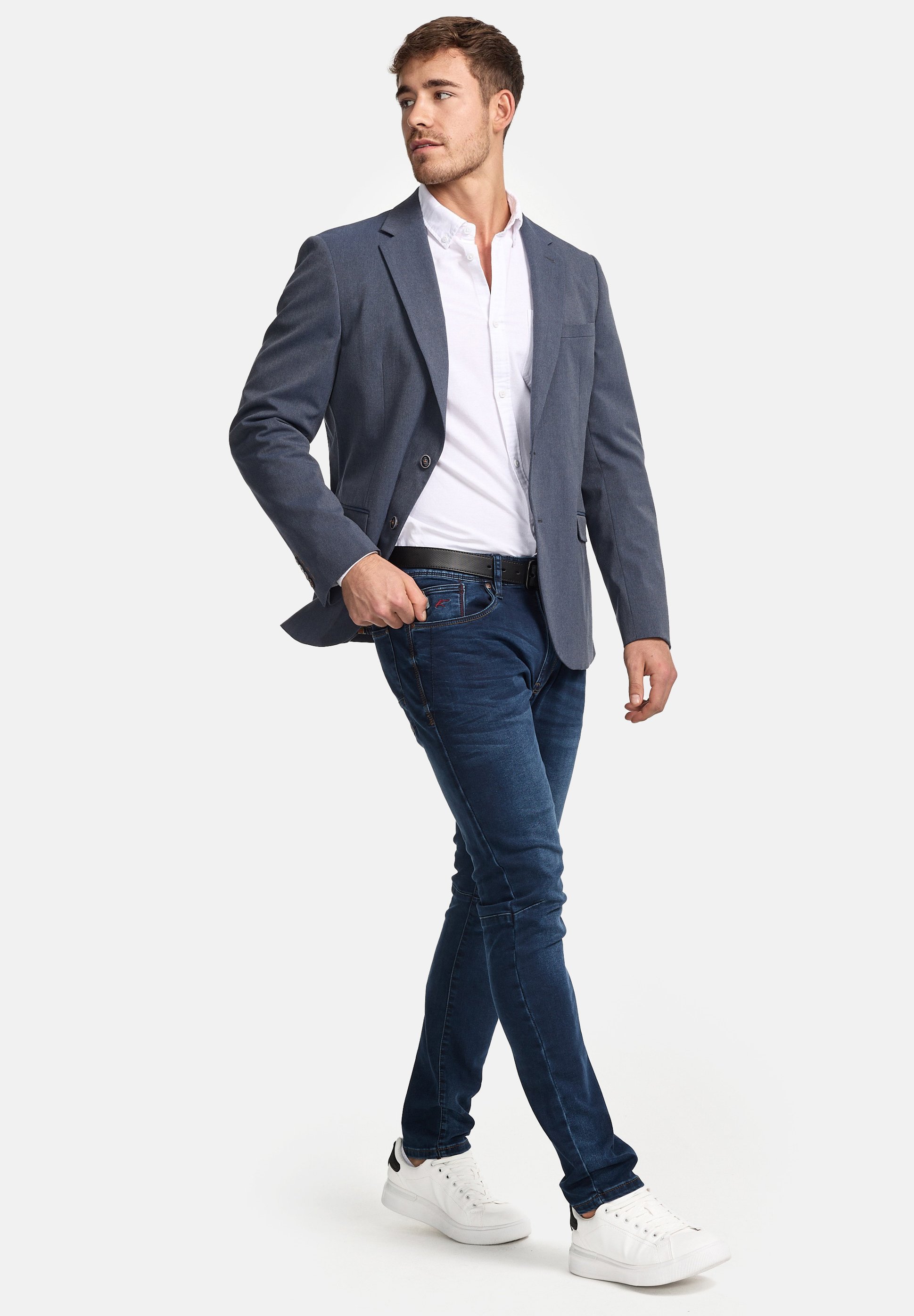outfit giacca blu e jeans