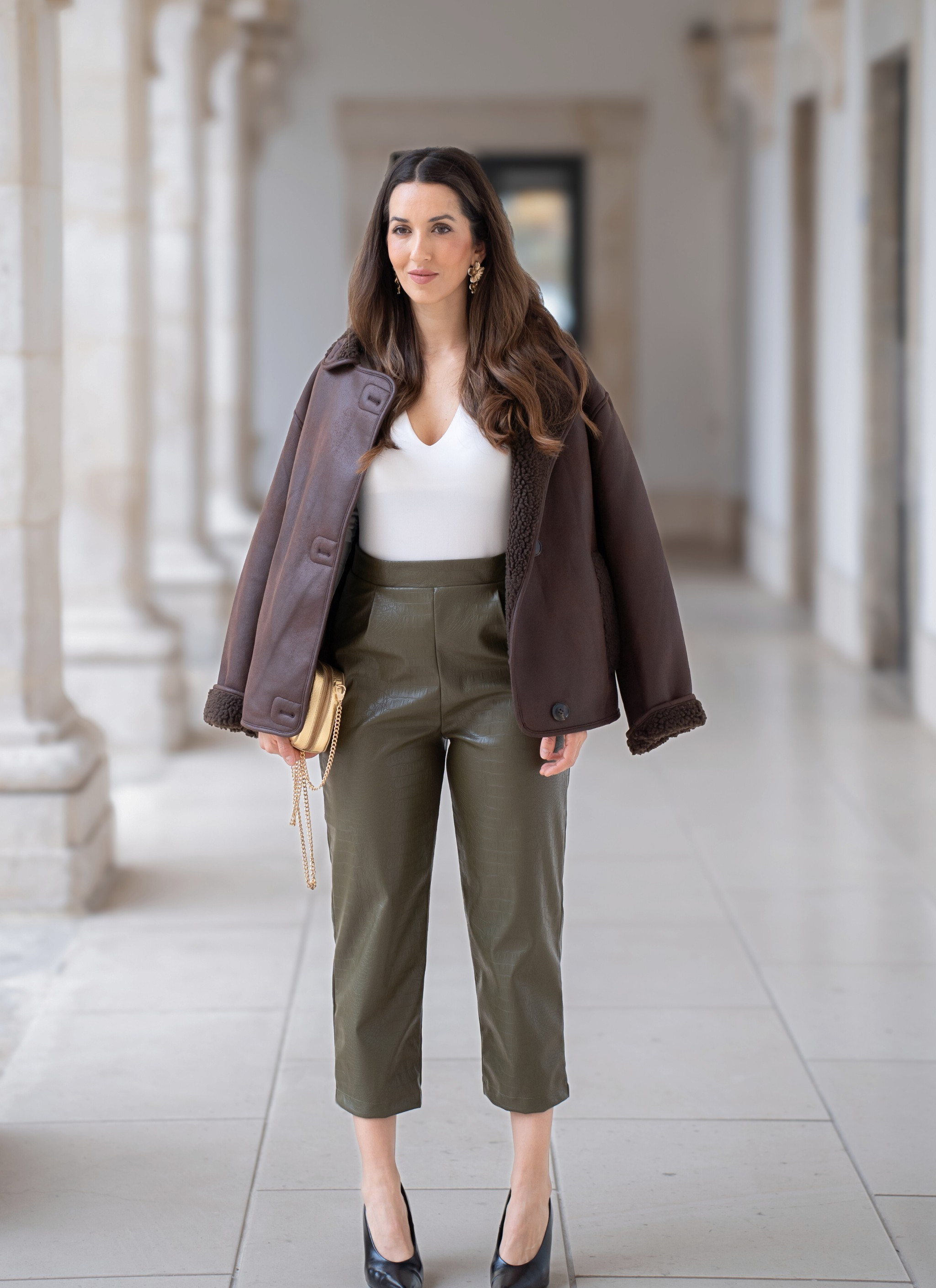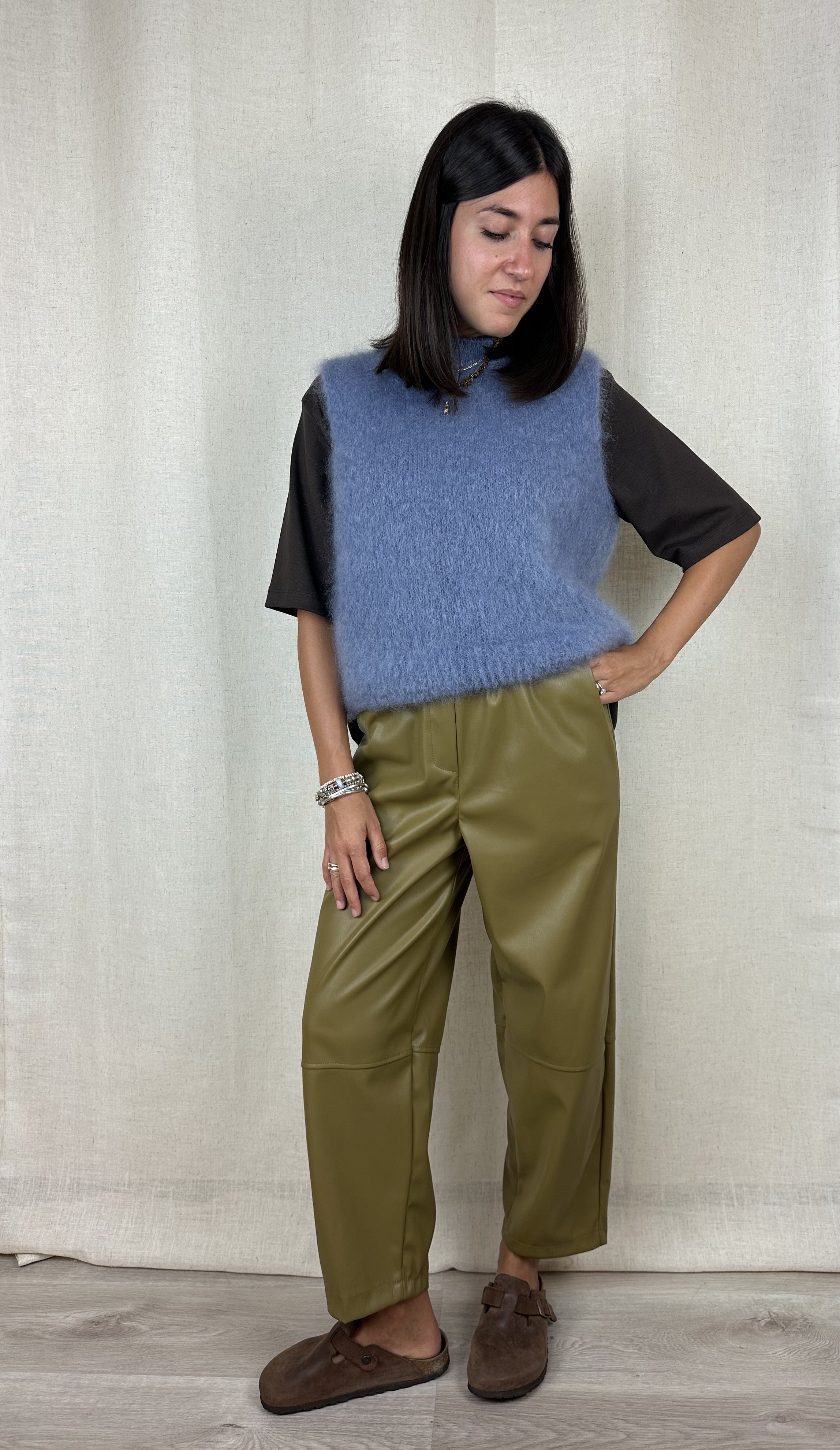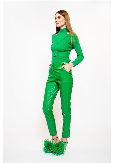 pantalone ecopelle verde