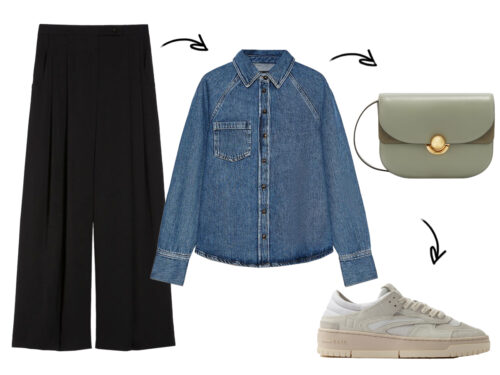pantalone nero e camicia di jeans