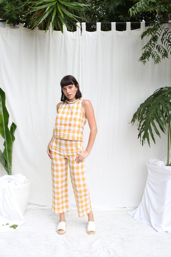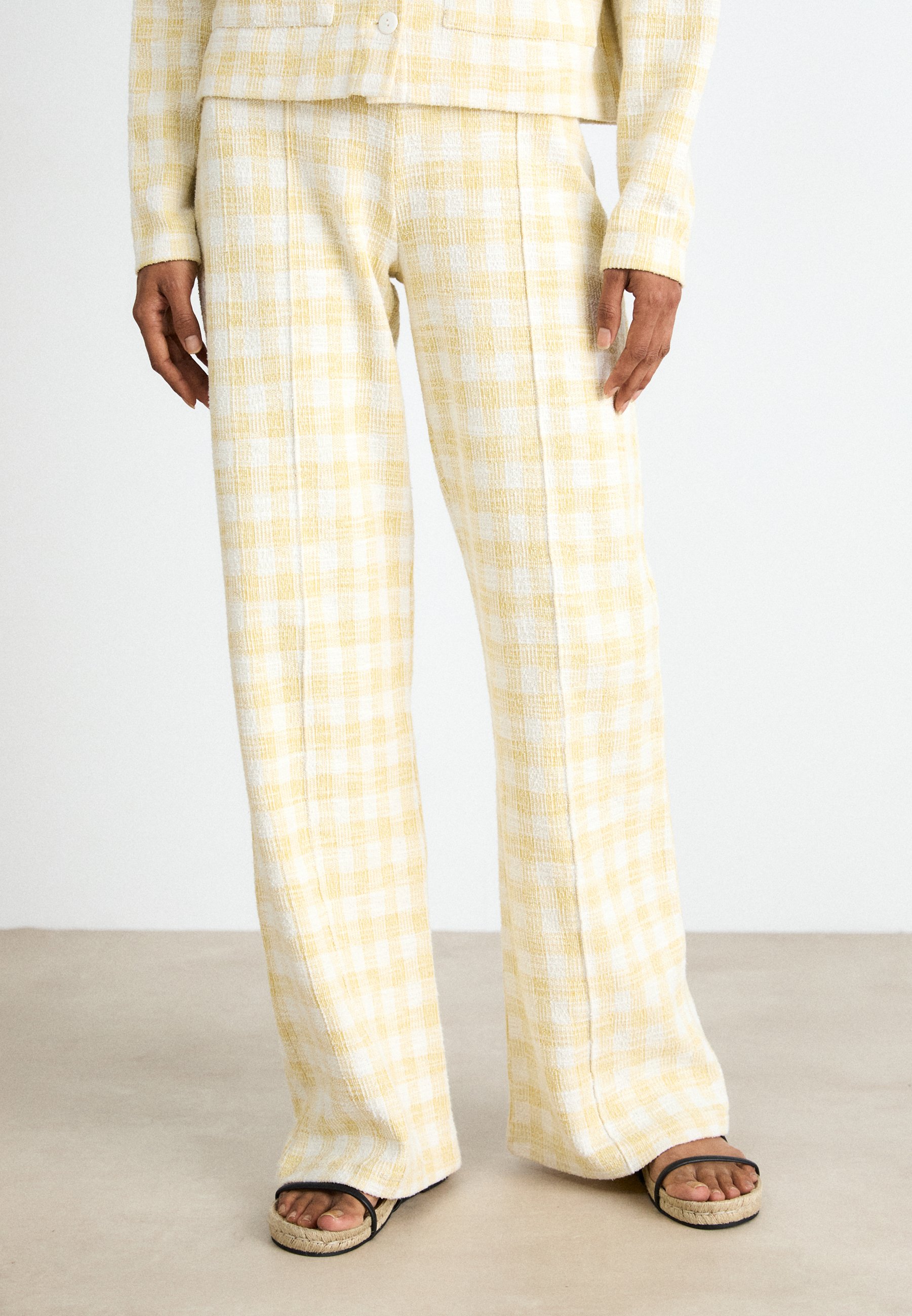 pantaloni a quadri gialli