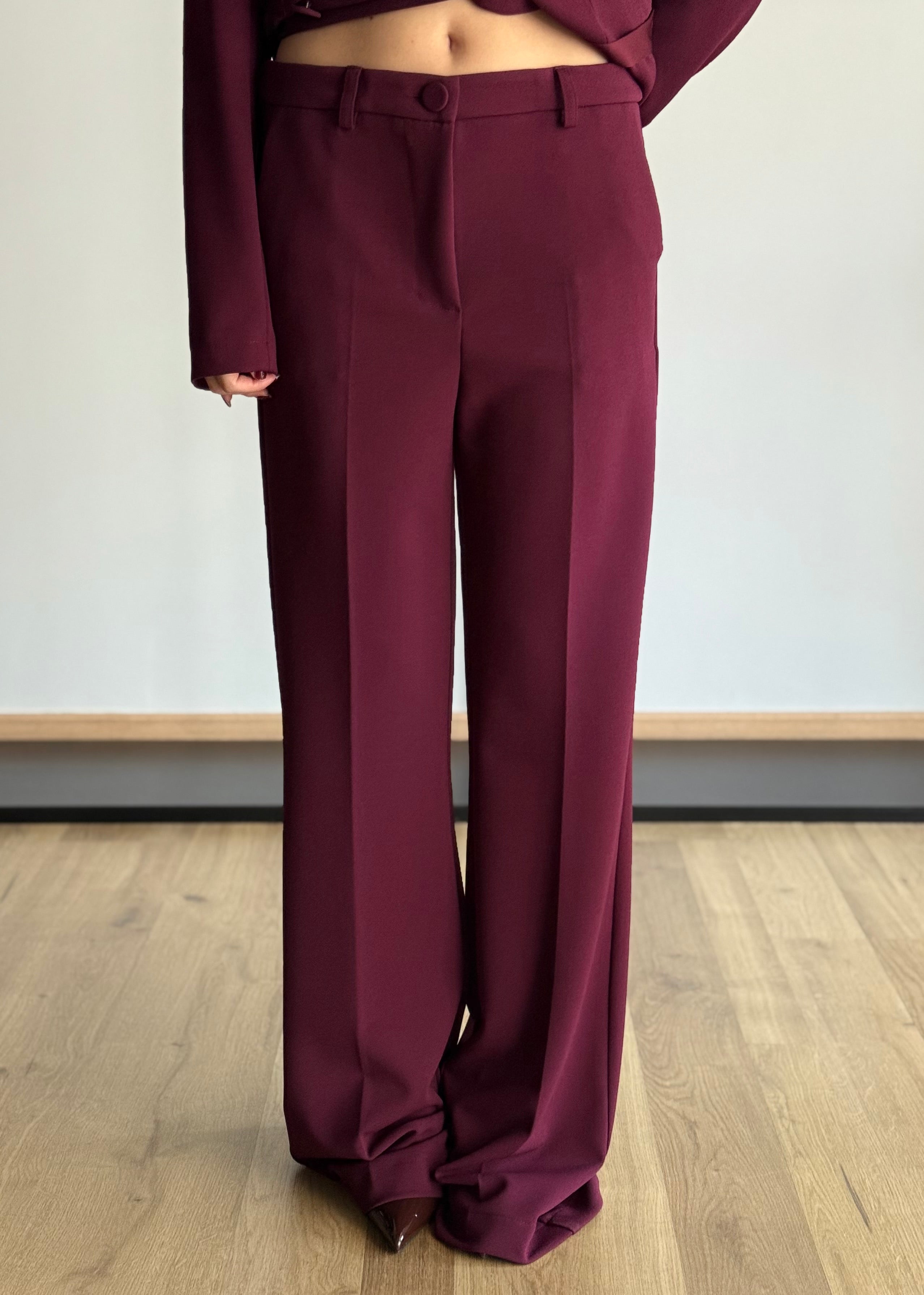 pantaloni a zampa bordeaux