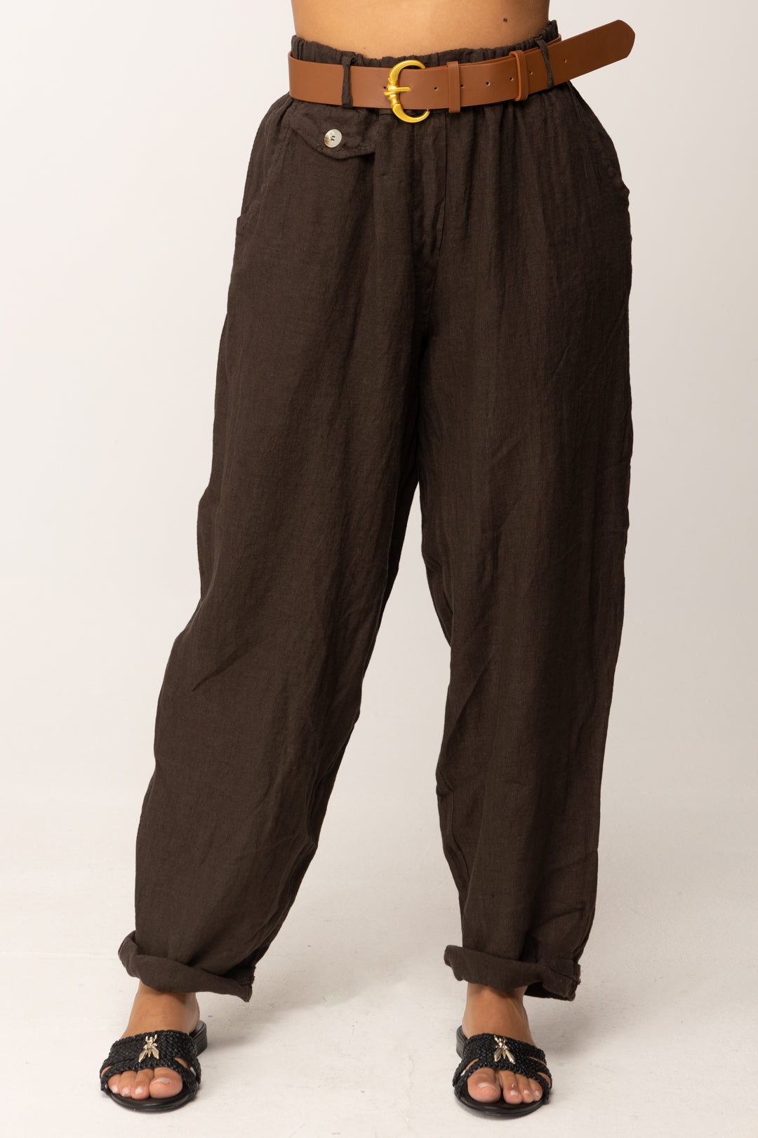 pantaloni ampi in lino