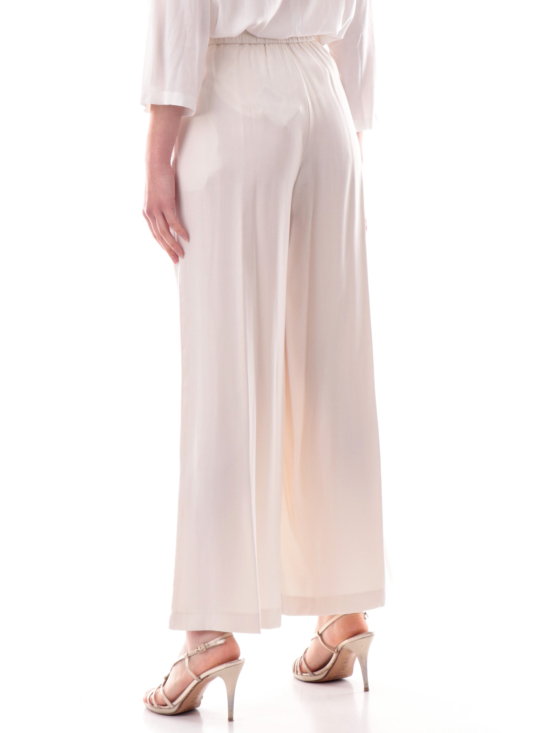 pantaloni bianchi a palazzo vita alta