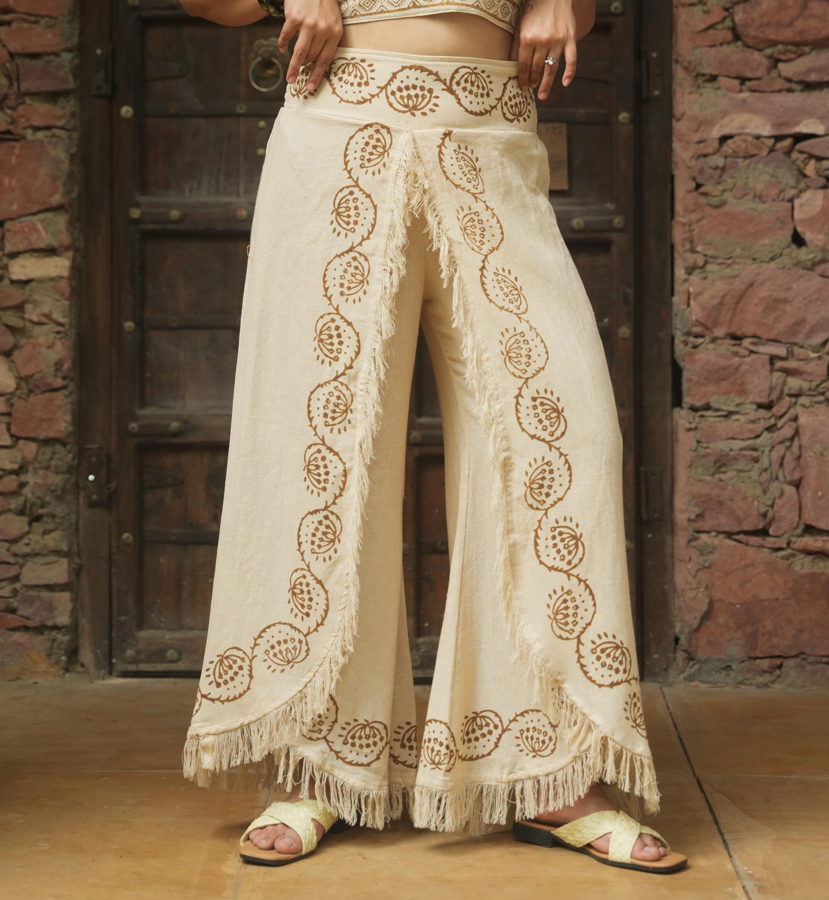pantaloni bianchi con frange