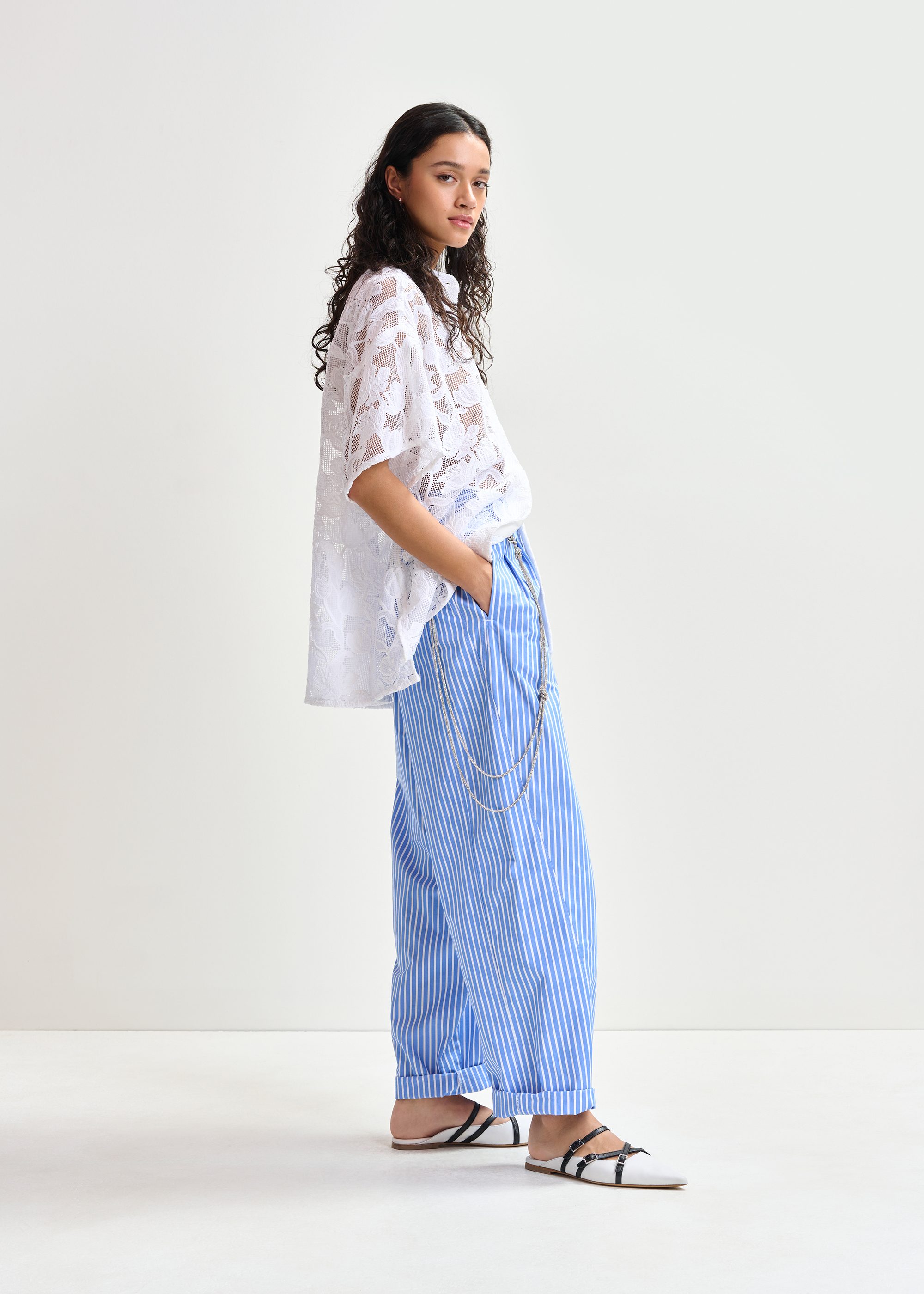pantaloni bianchi e azzurri