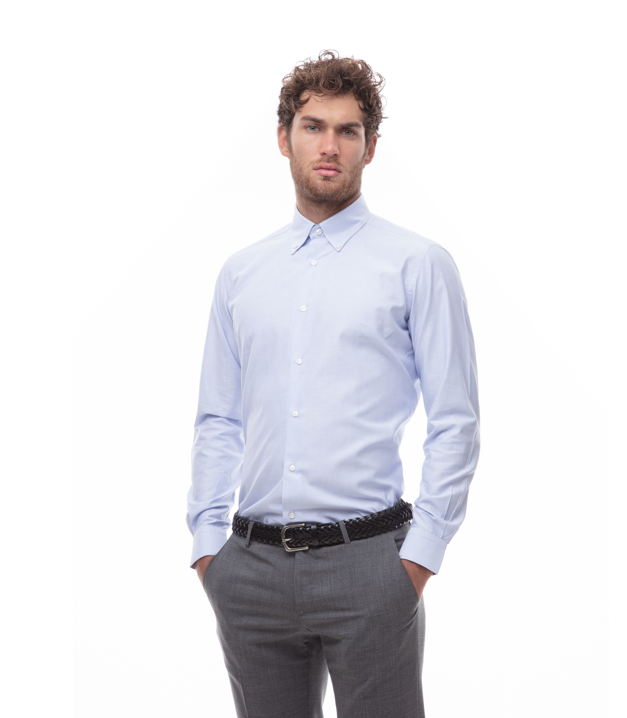 pantaloni blu camicia azzurra