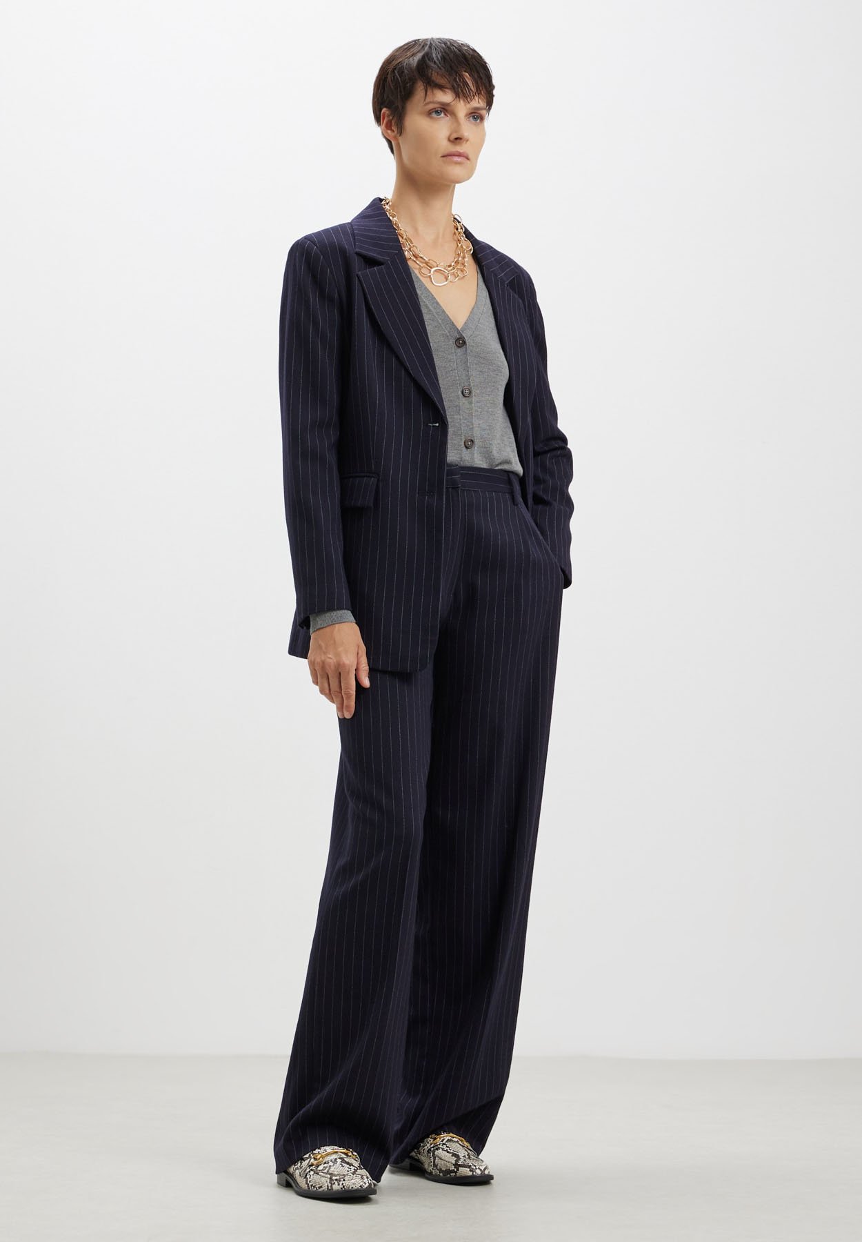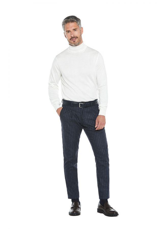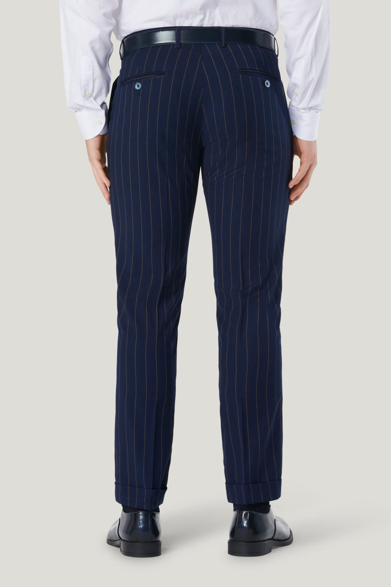 pantaloni blu gessati