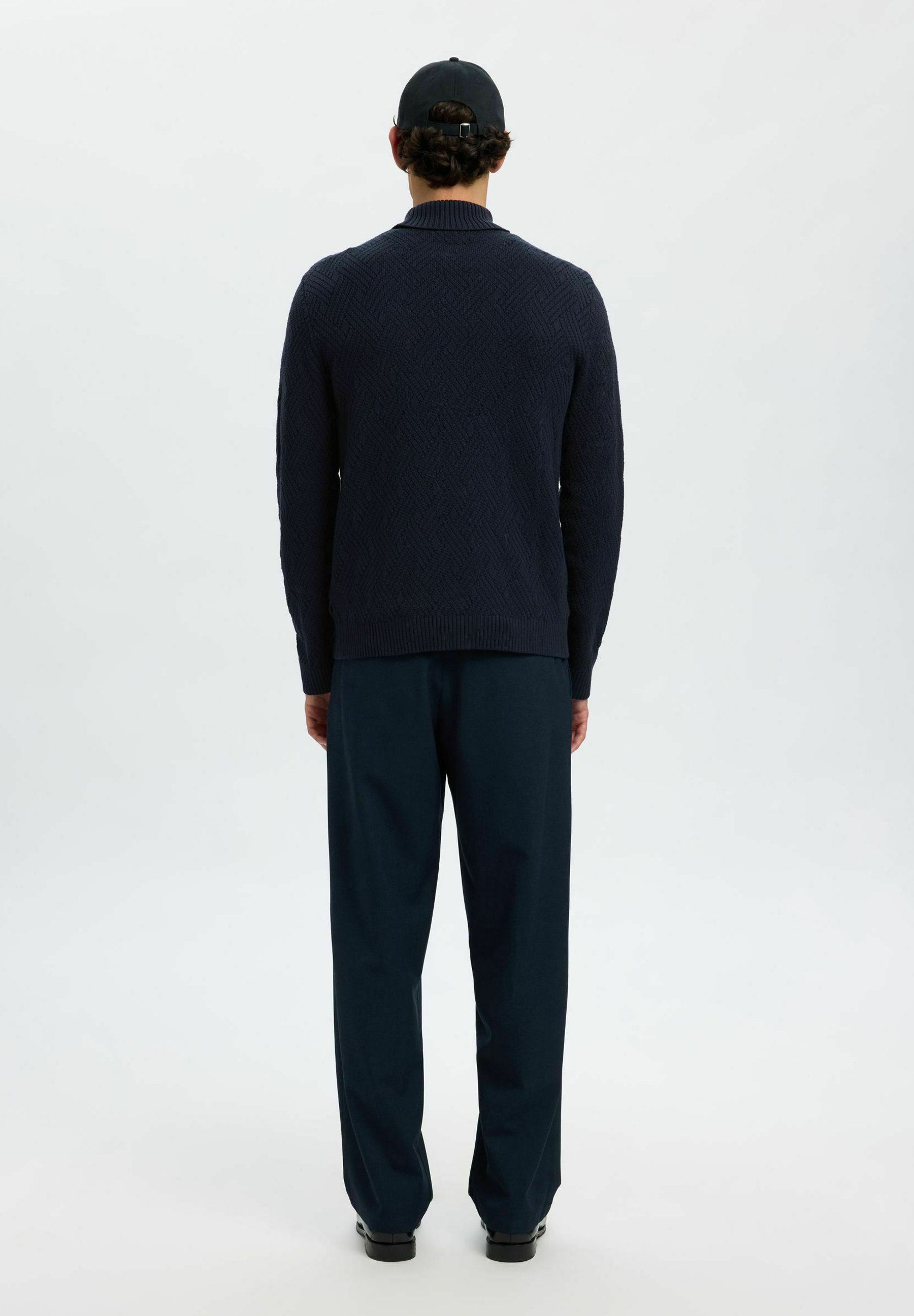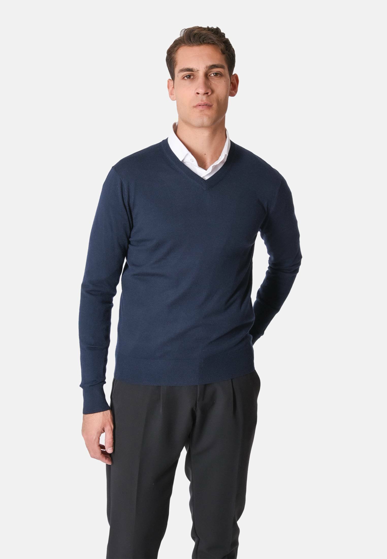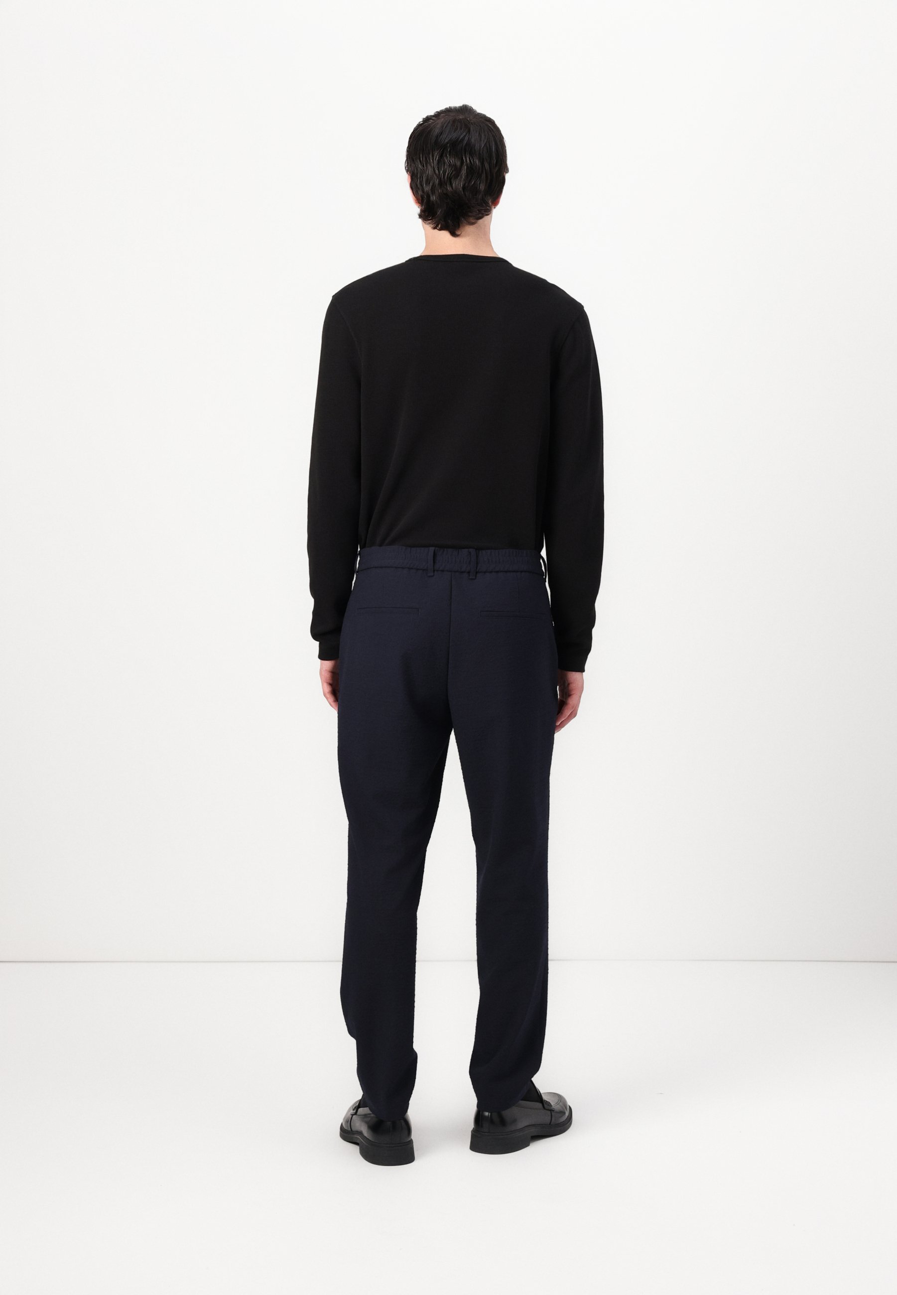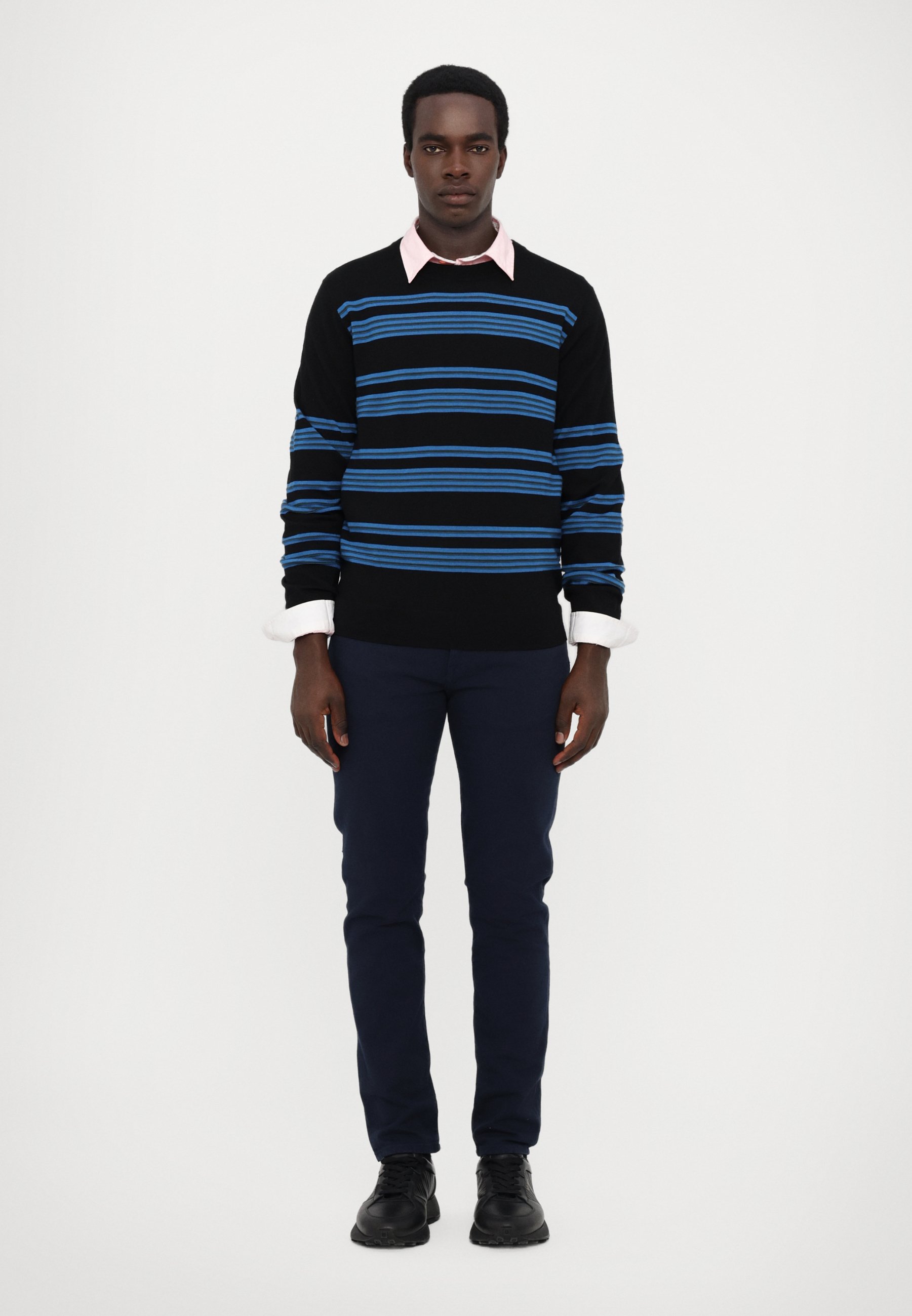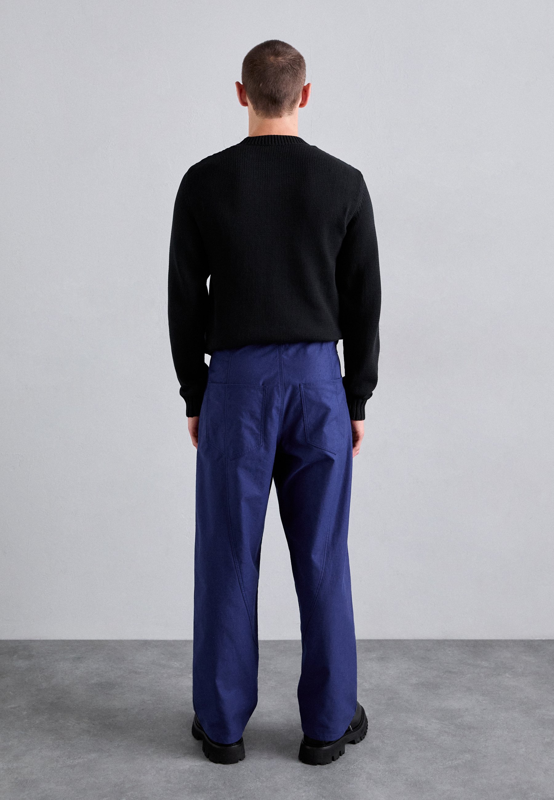 pantaloni blu maglione nero