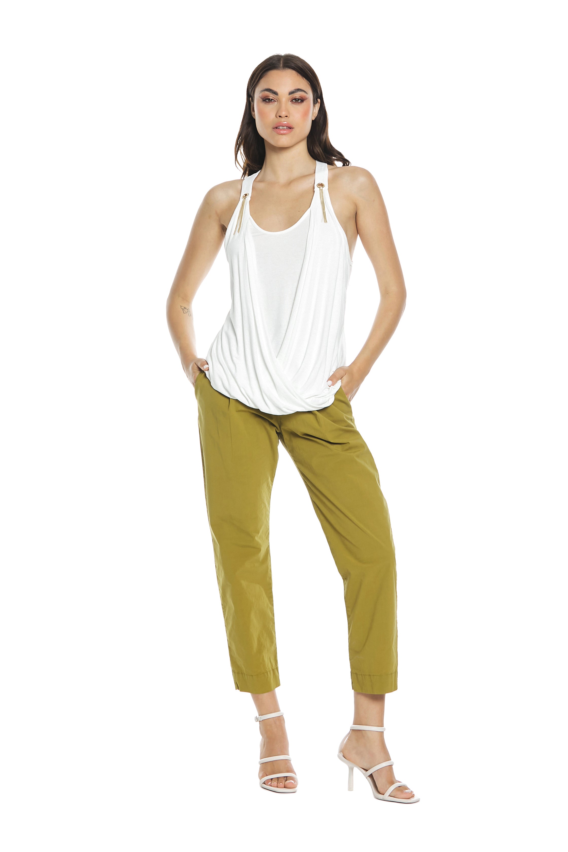 pantaloni capri a vita alta