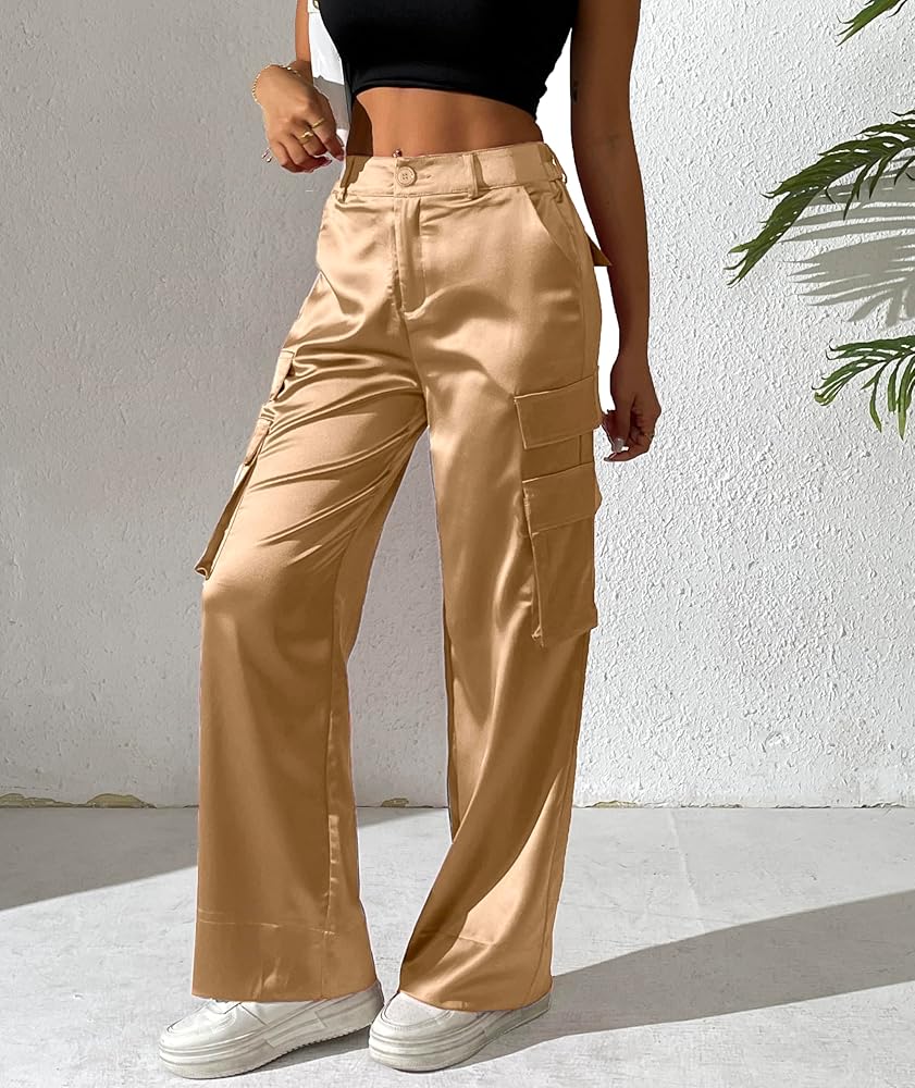 pantaloni cargo in raso