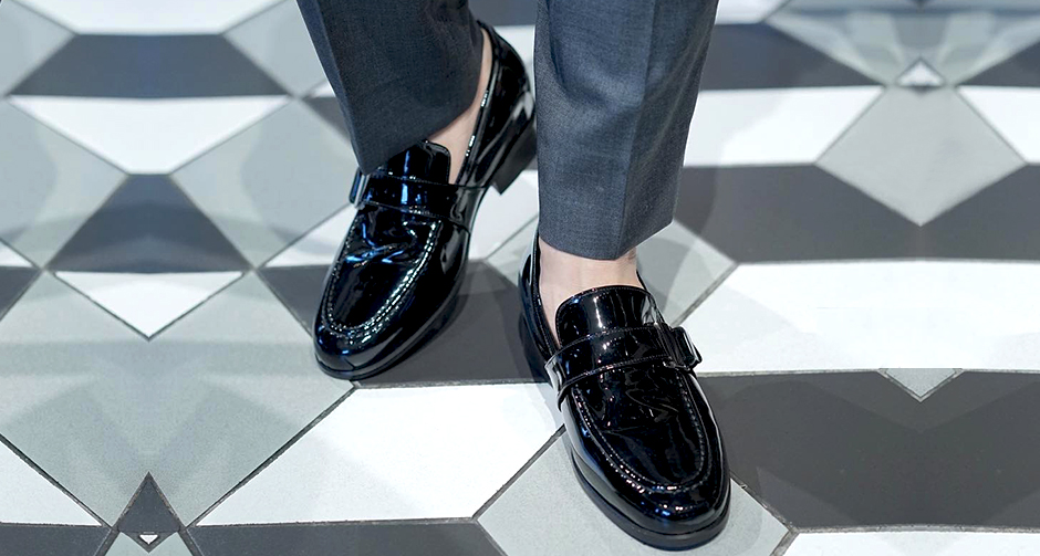 pantaloni che cadono sulla scarpa