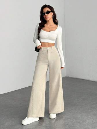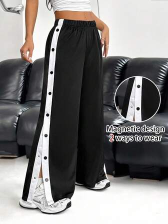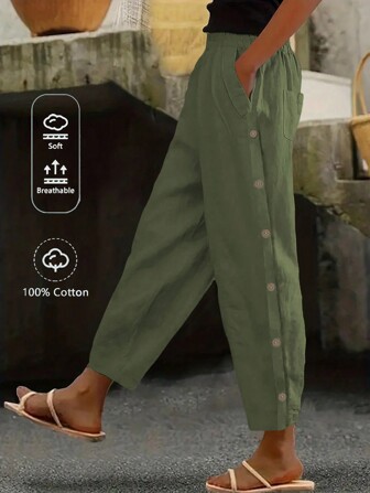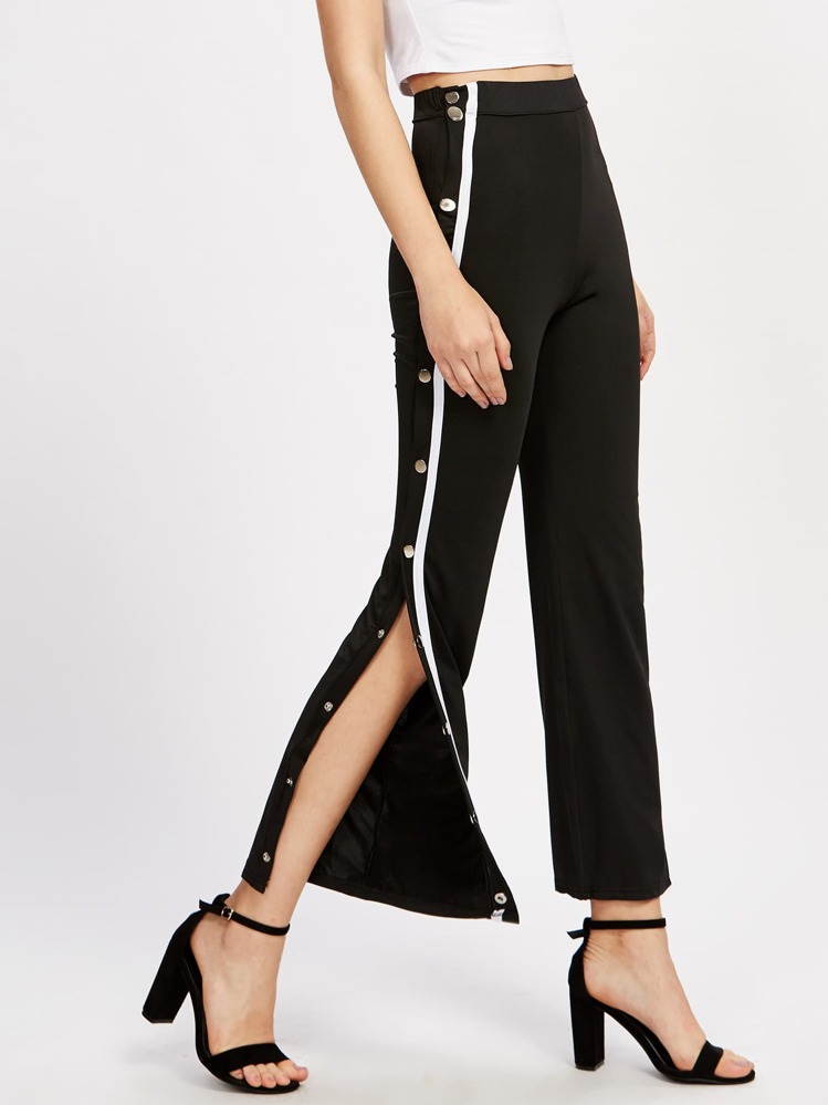 pantaloni con bottoni laterali shein