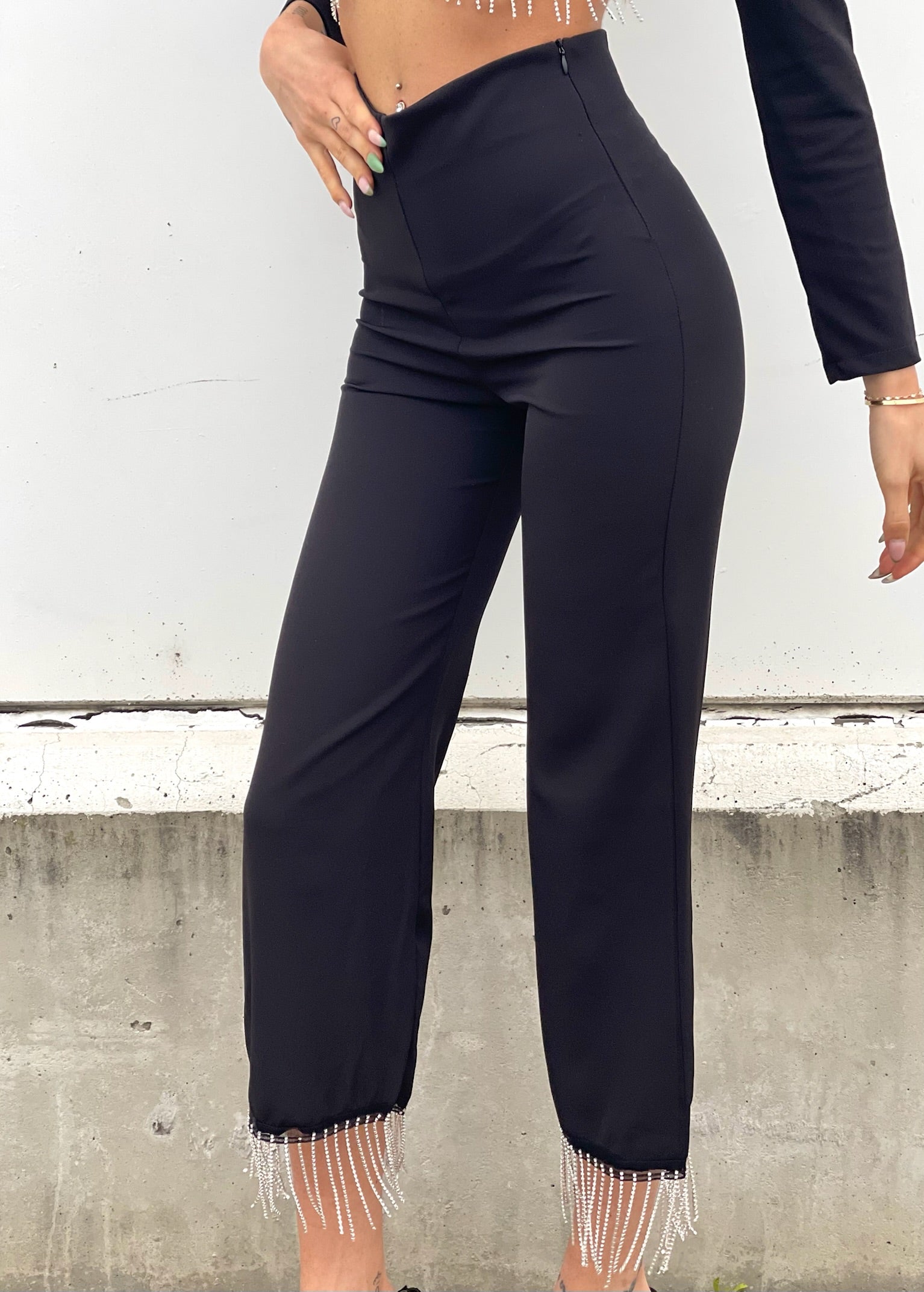 pantaloni con frange a strati