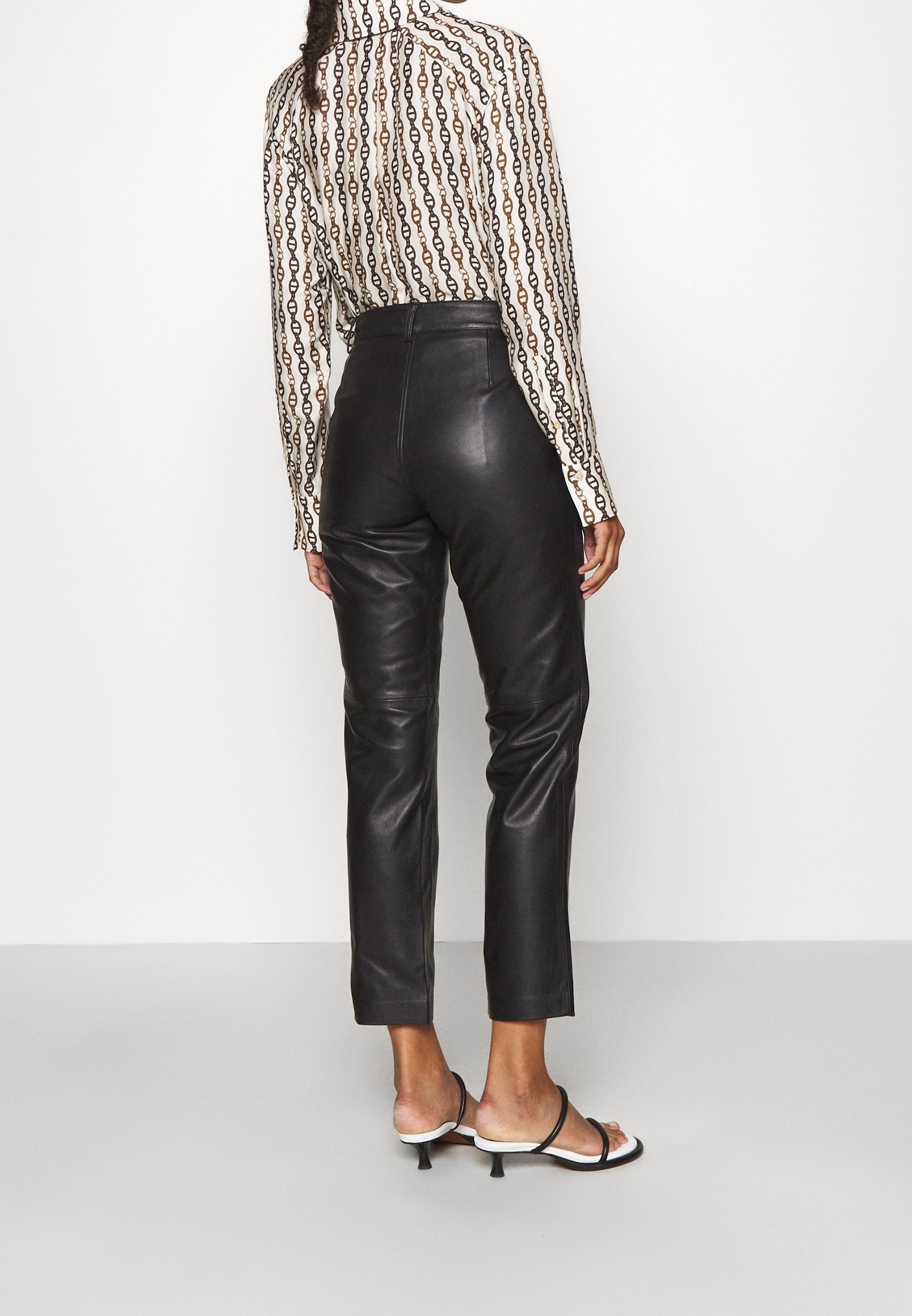 pantaloni di pelle e camicia