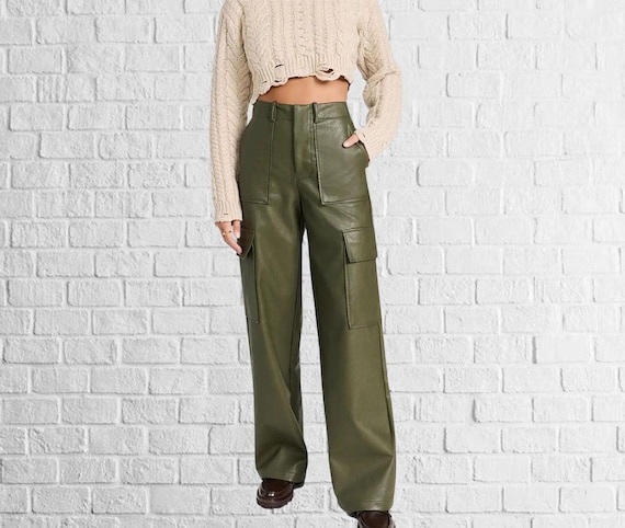 pantaloni di pelle verde