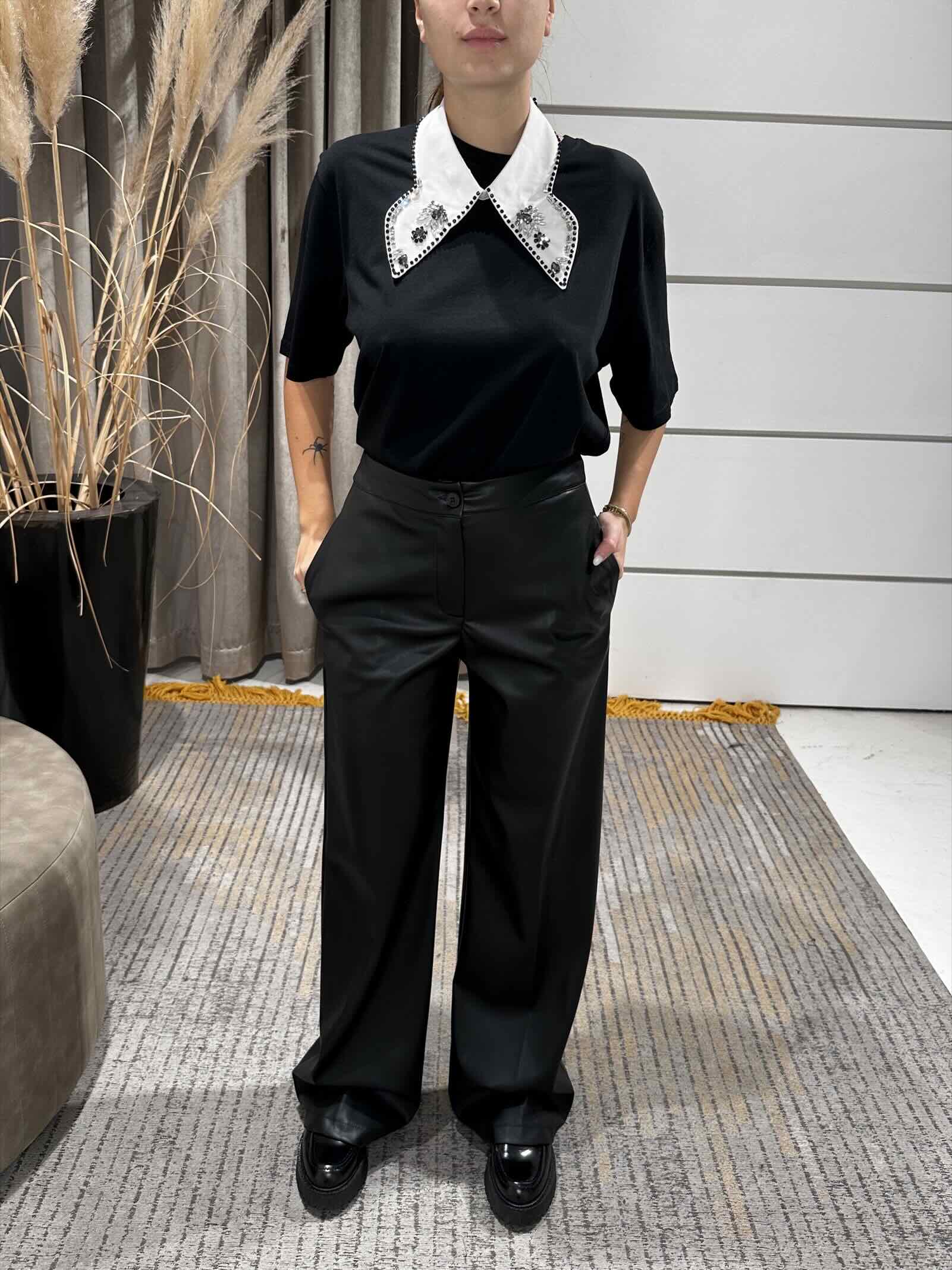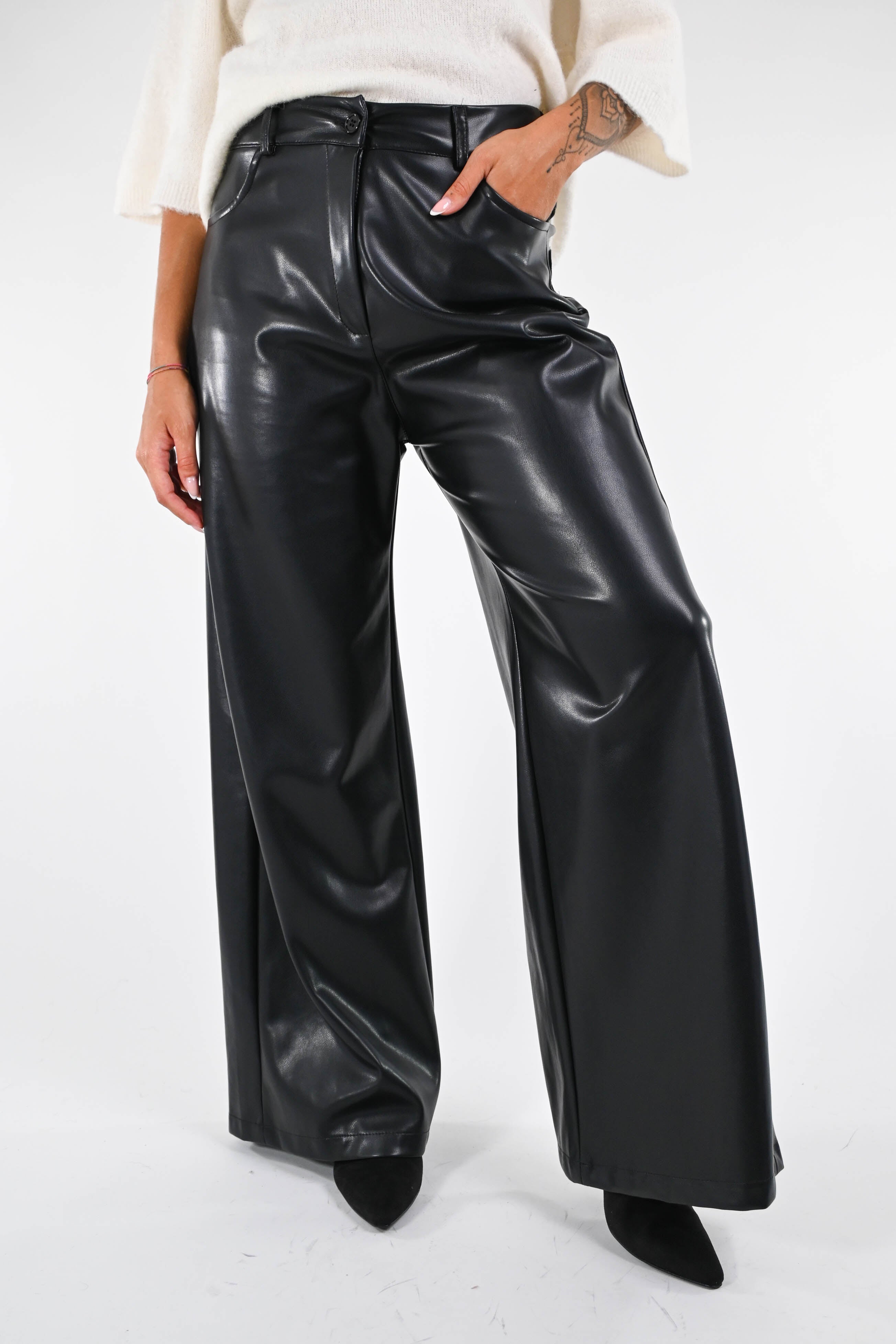 pantaloni ecopelle palazzo
