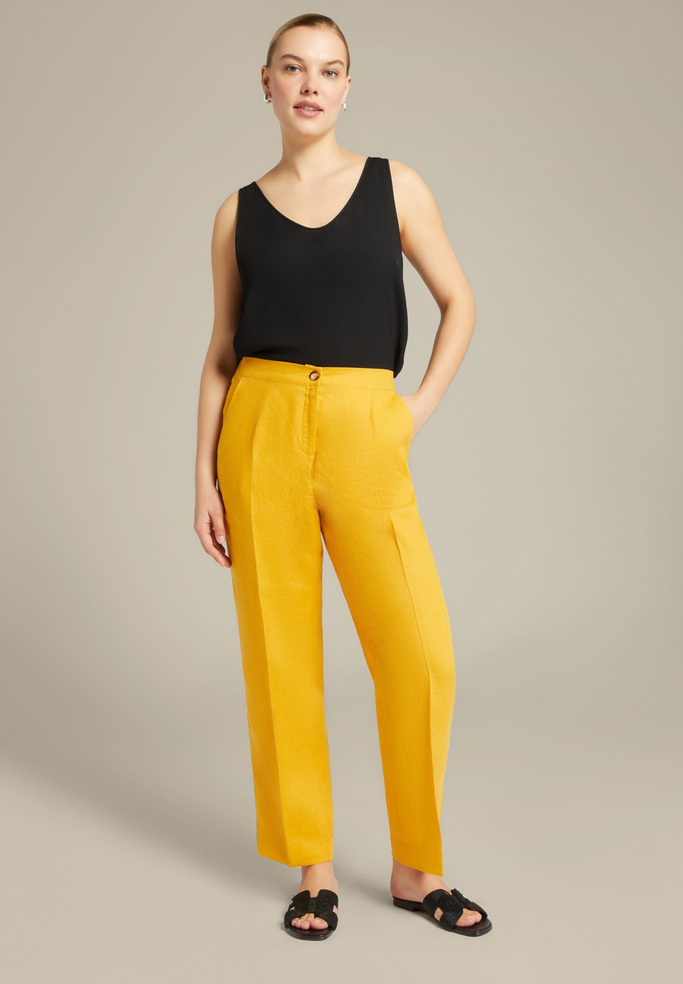 pantaloni gialli vita alta