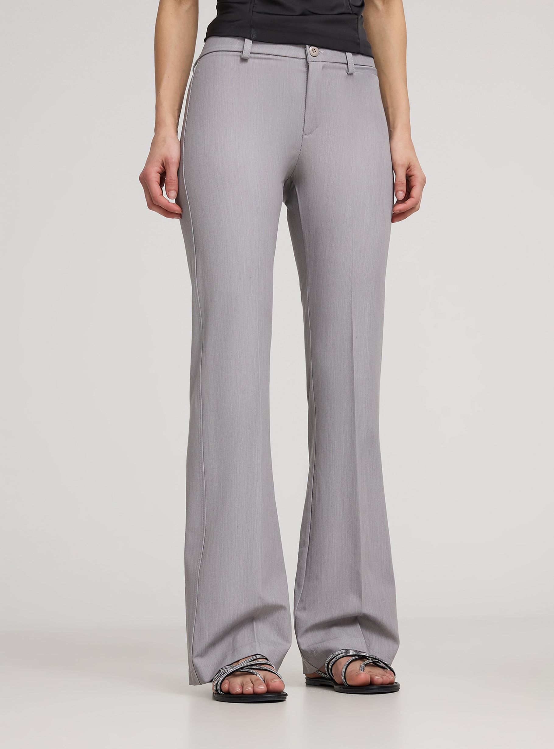 pantaloni grigi a zampa