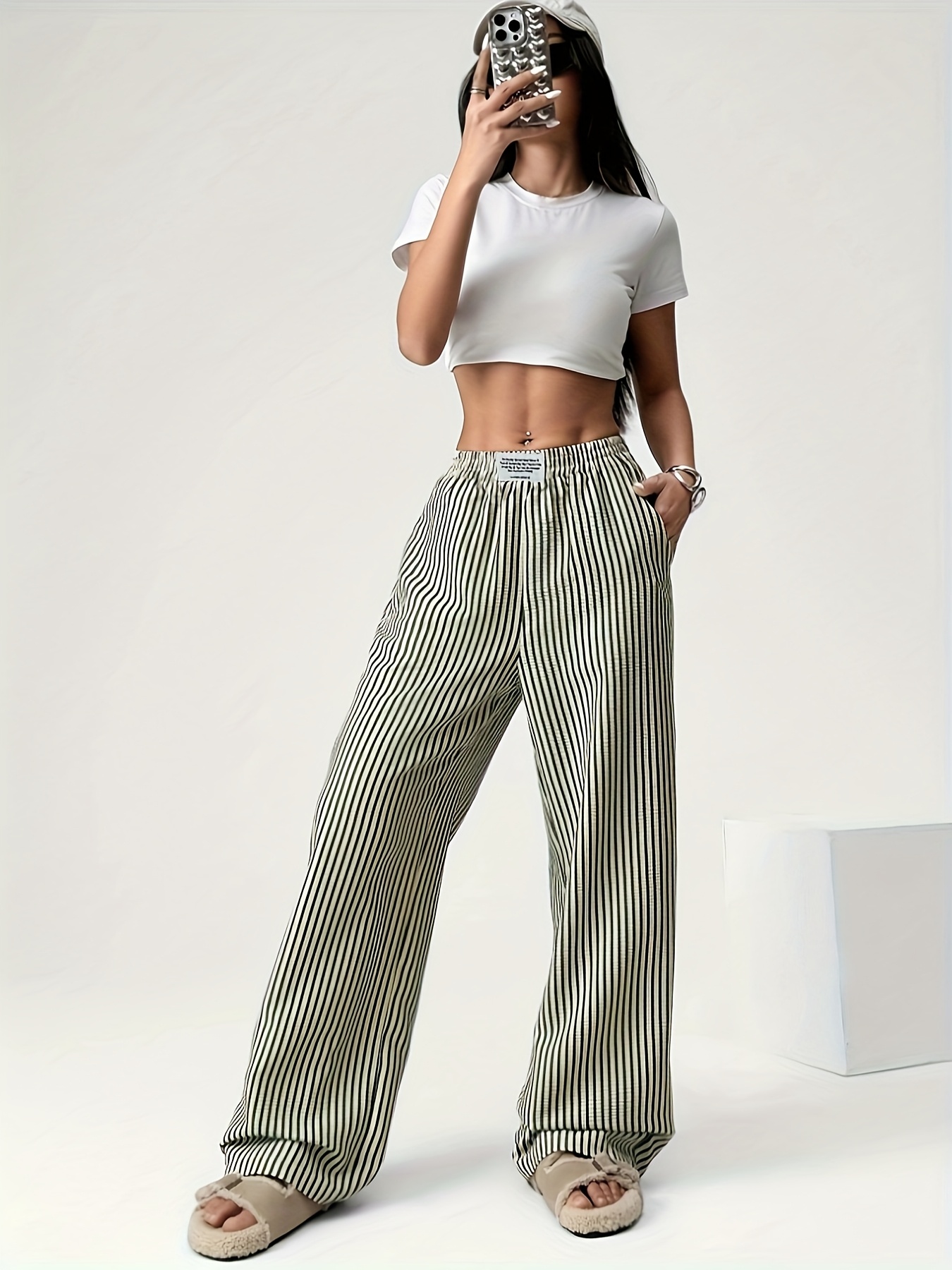pantaloni larghi a righe bianche e nere
