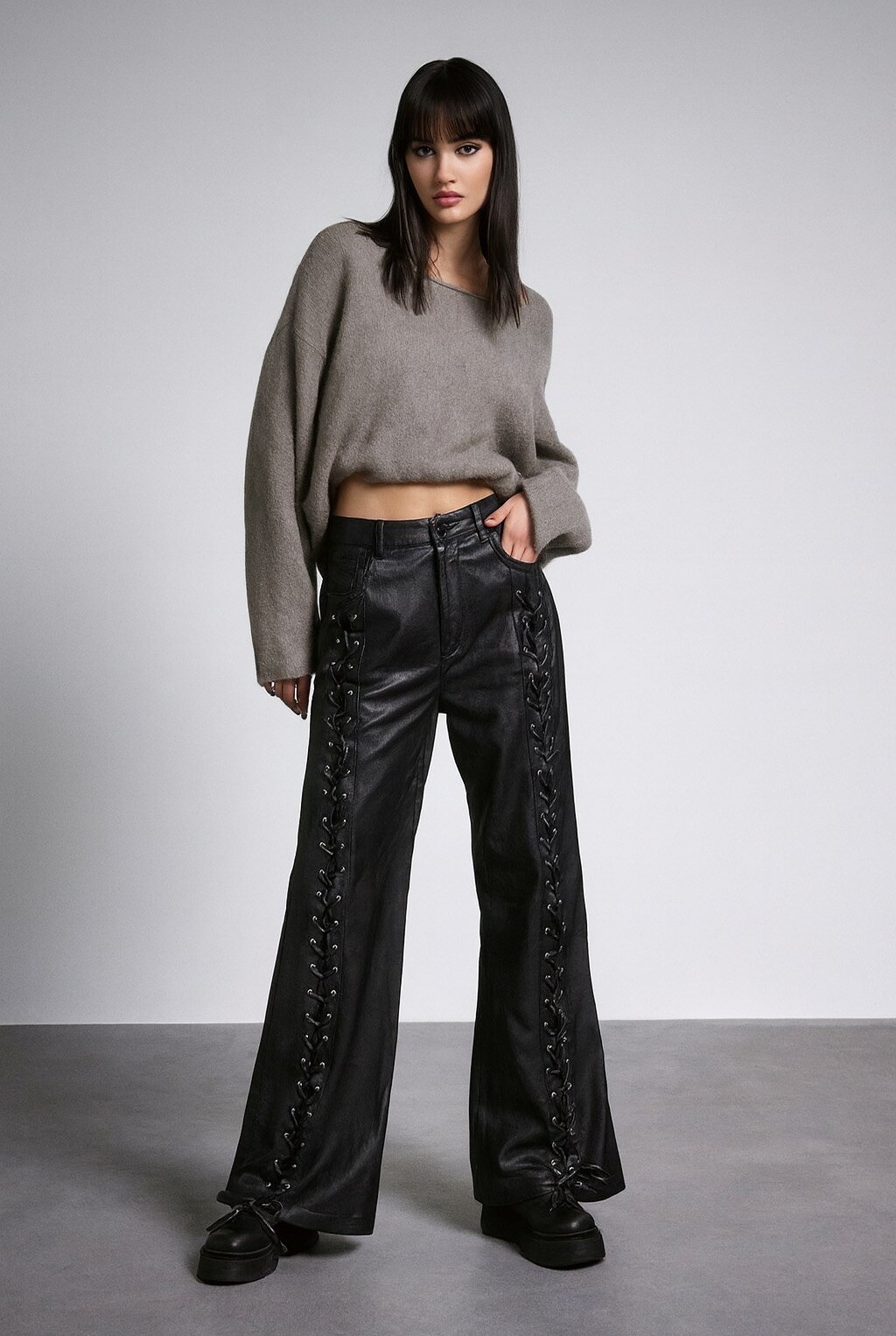 pantaloni larghi in pelle