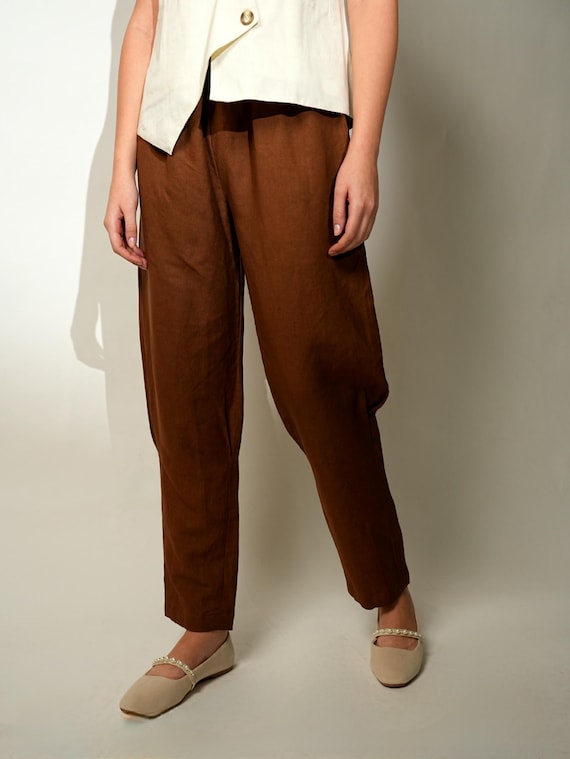 pantaloni lino marrone