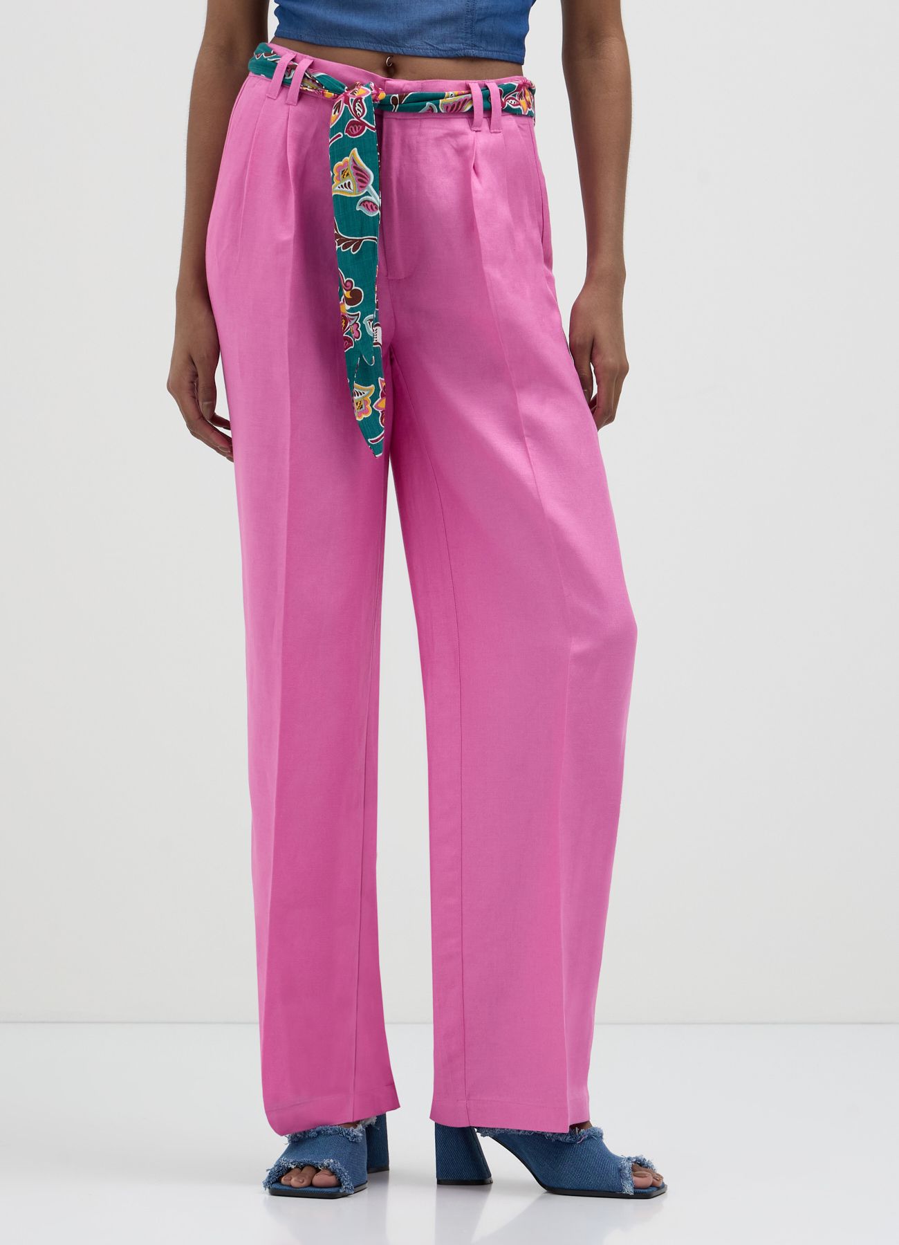 pantaloni lino rosa
