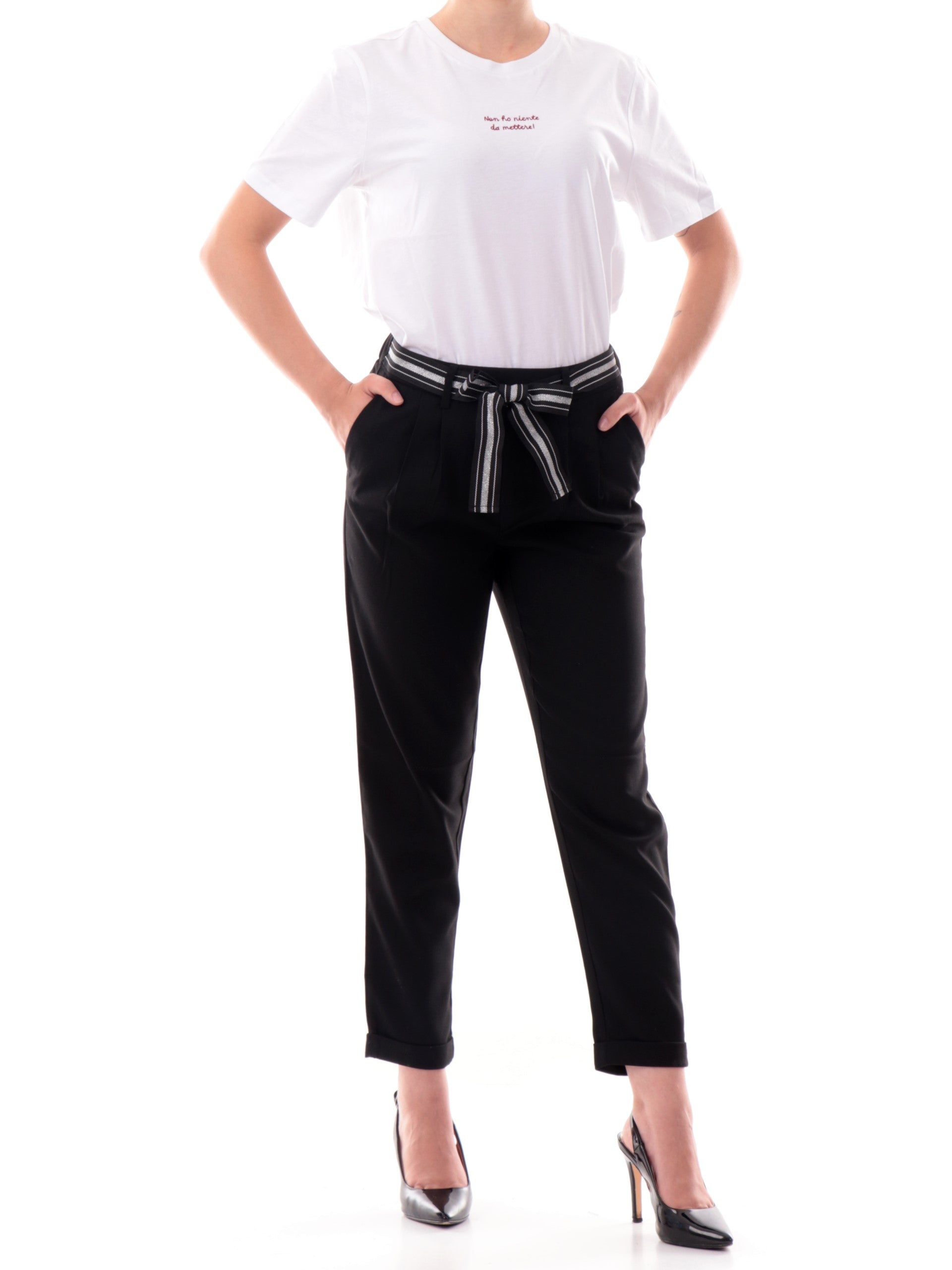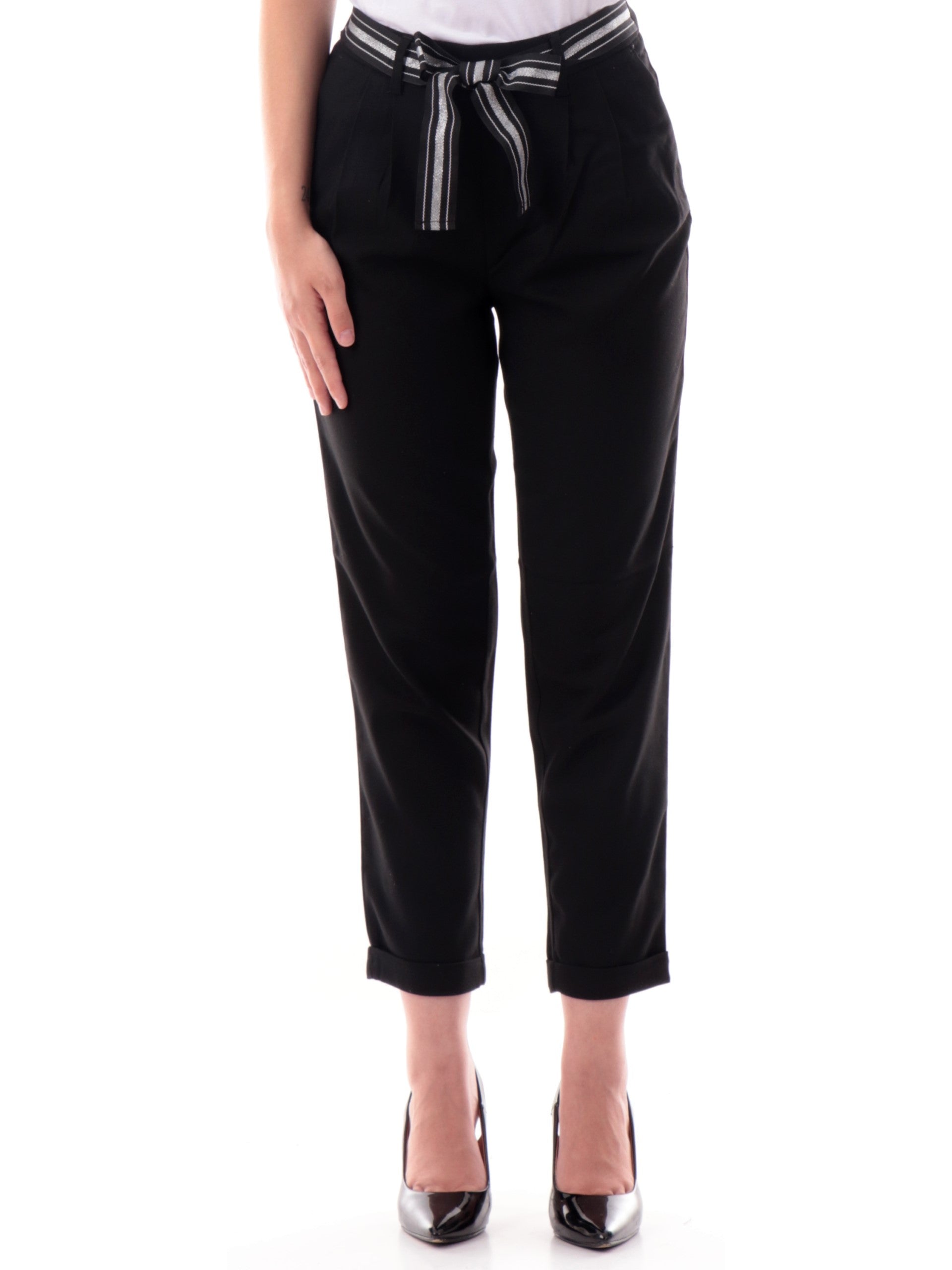 pantaloni neri con fiocco in vita