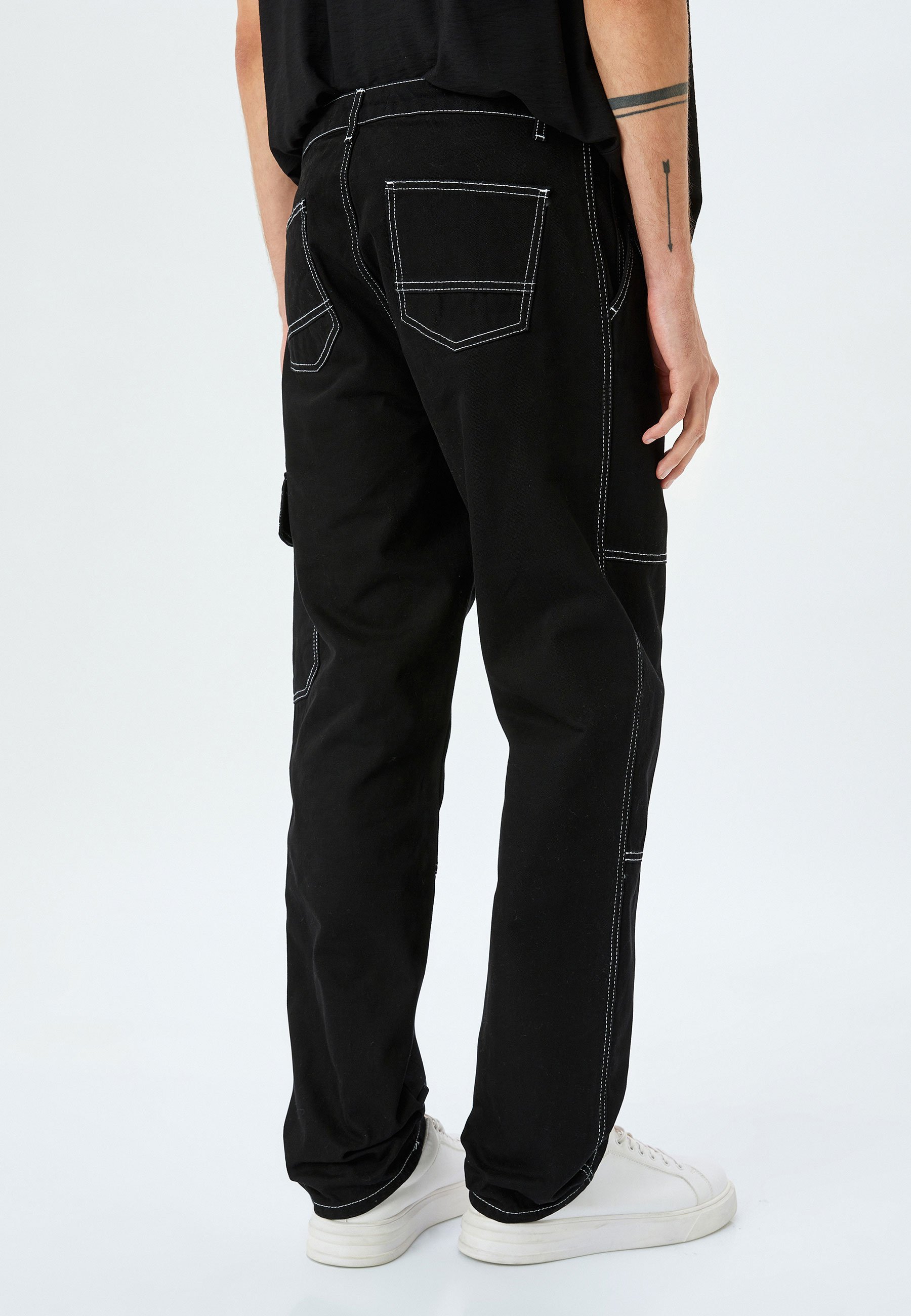 pantaloni neri cuciture bianche