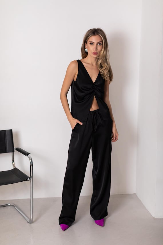 pantaloni neri di raso