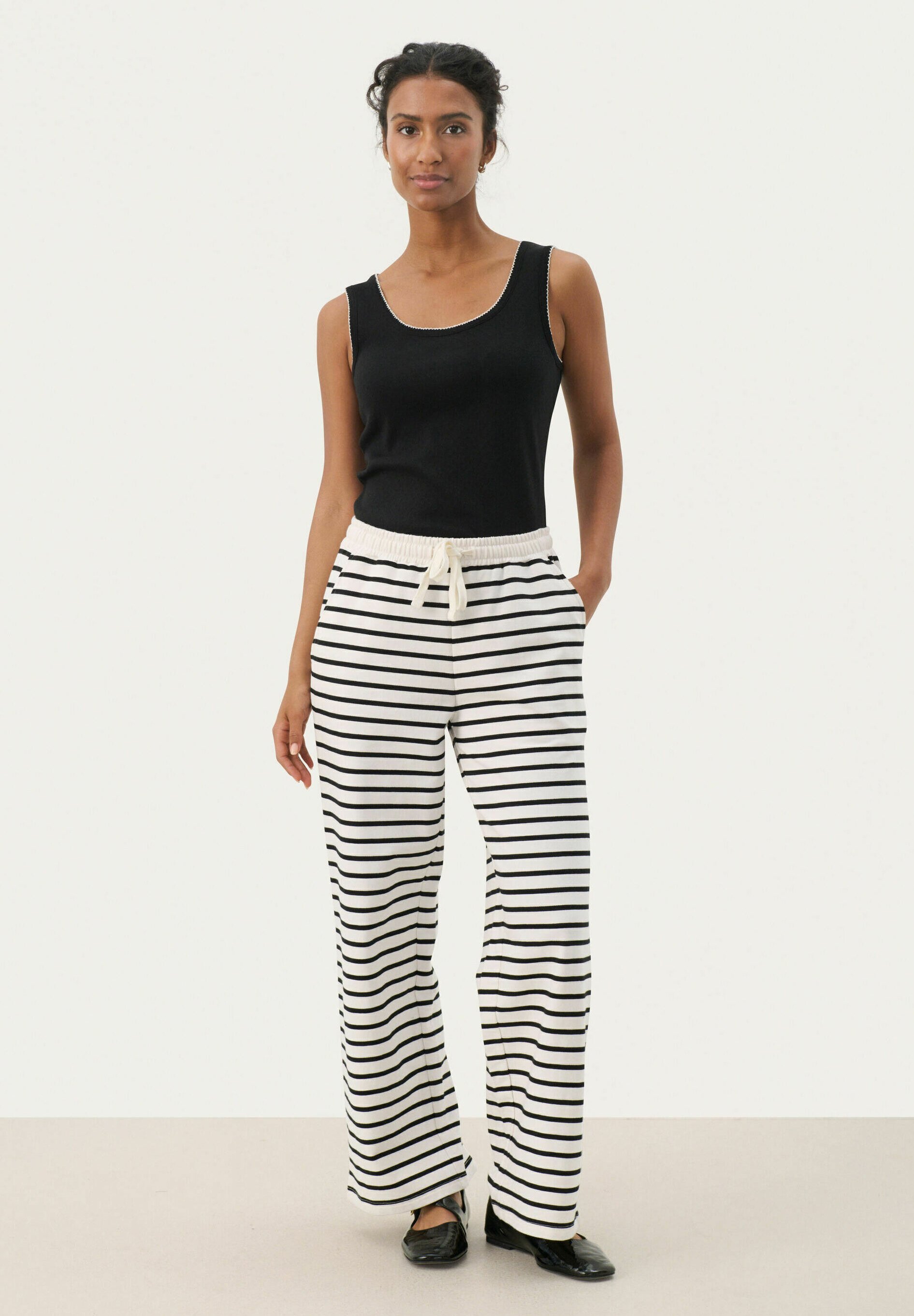 pantaloni neri e bianchi a righe