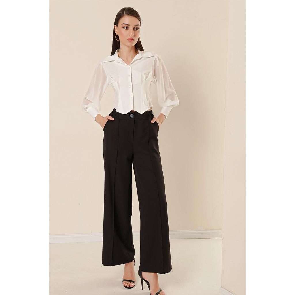 pantaloni palazzo con bottoni laterali