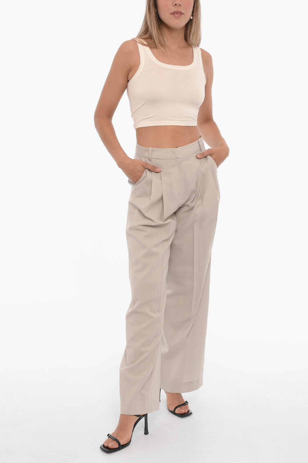 pantaloni pinces vita alta donna