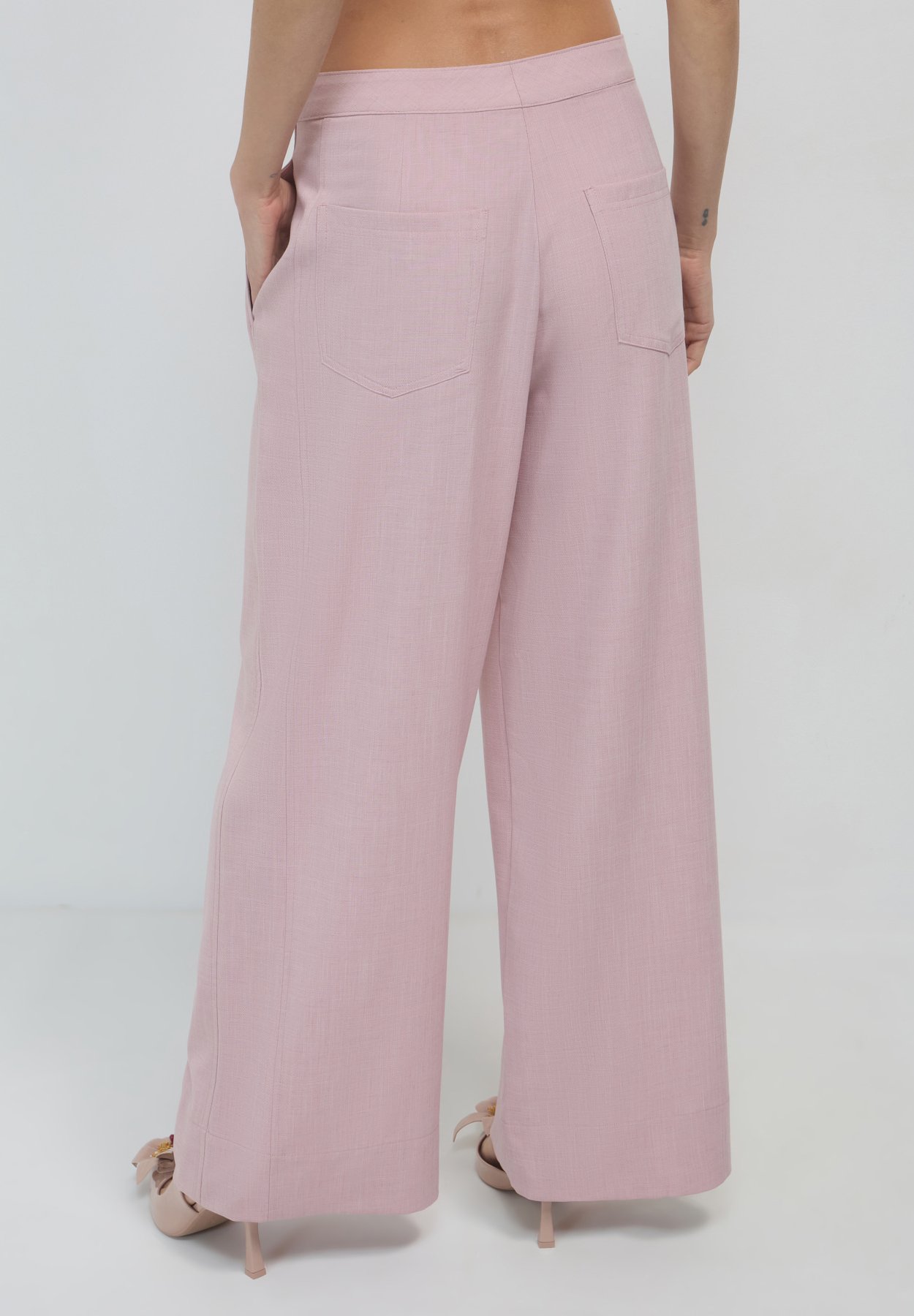 pantaloni rosa cipria vita alta