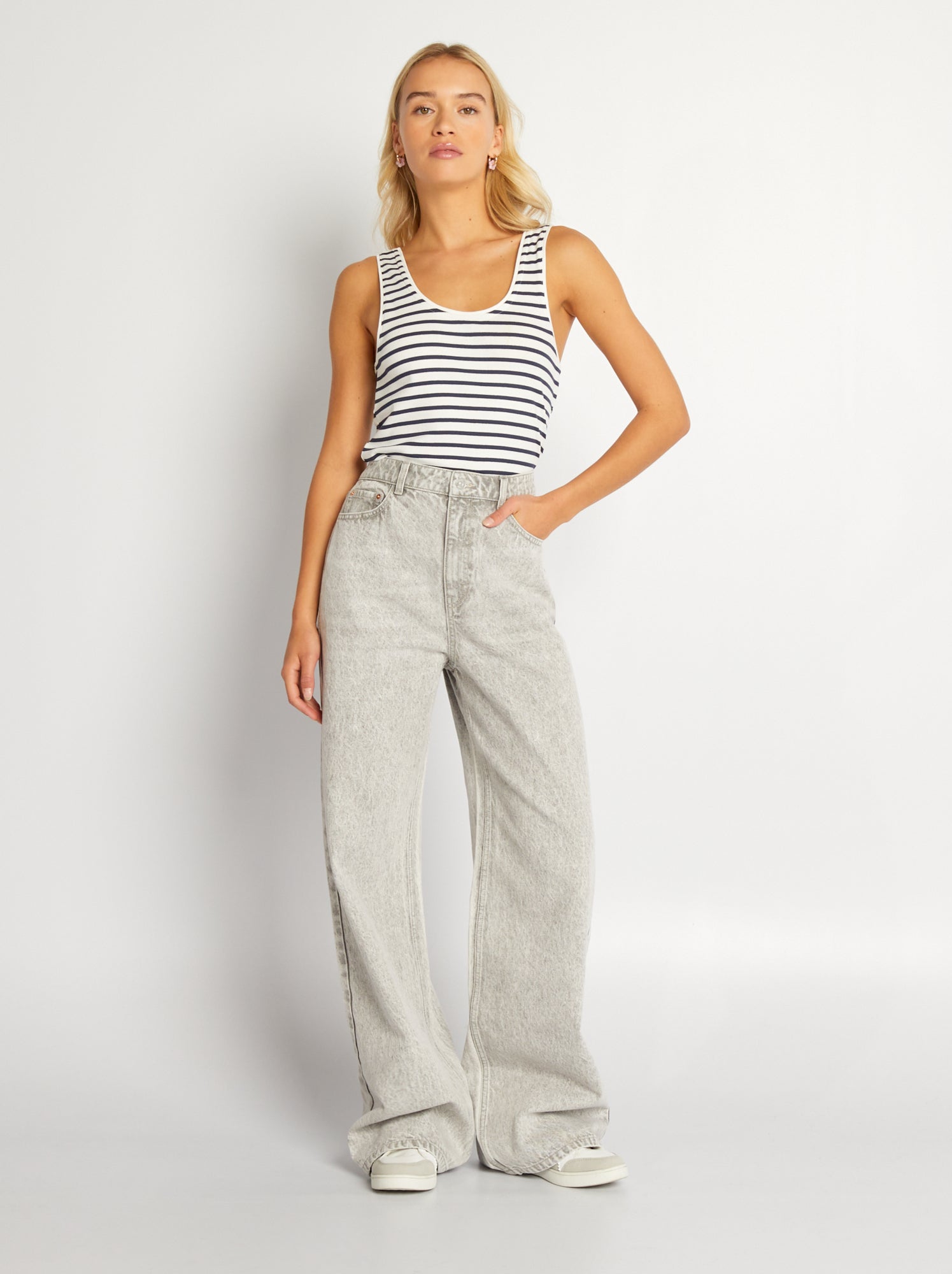 pantaloni wide leg grigi