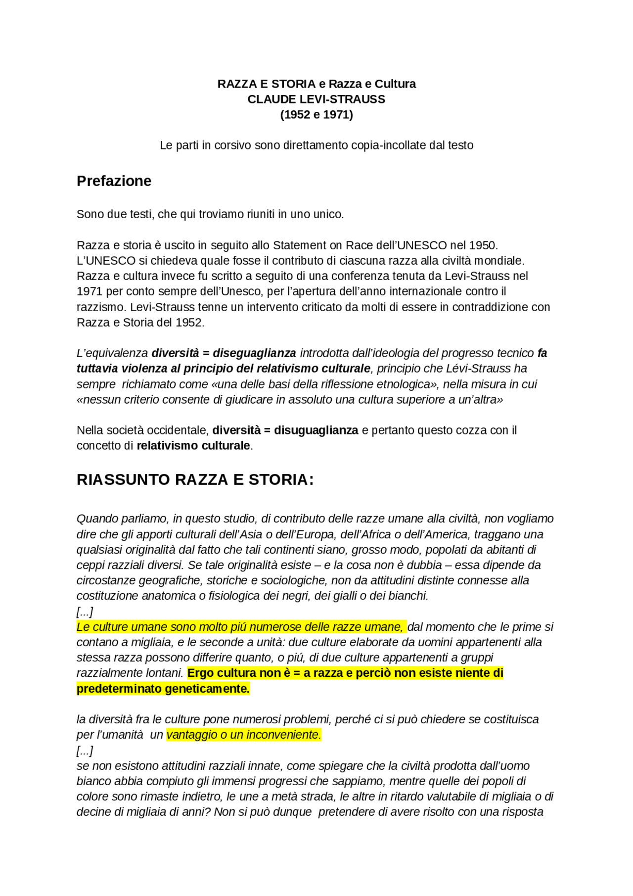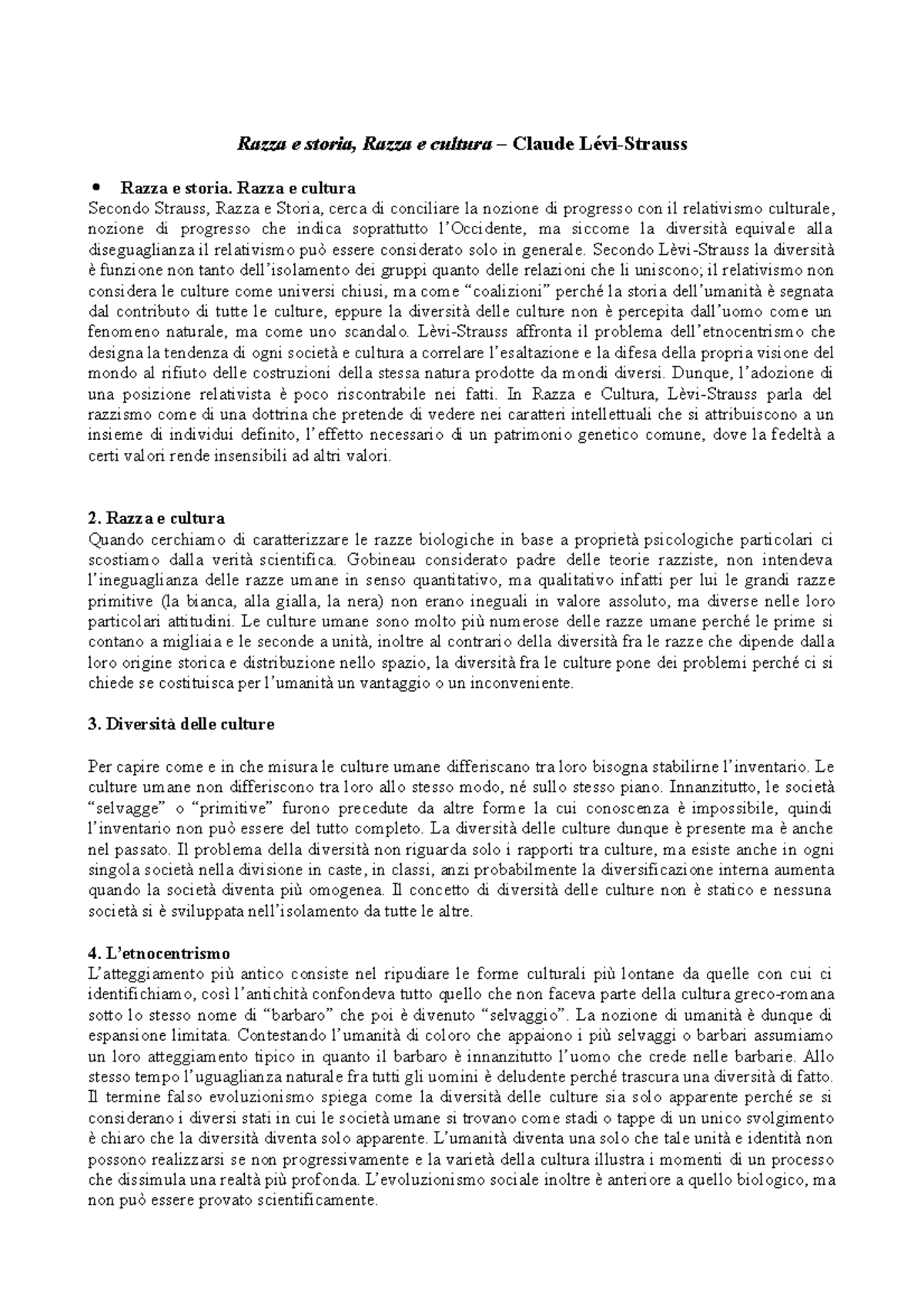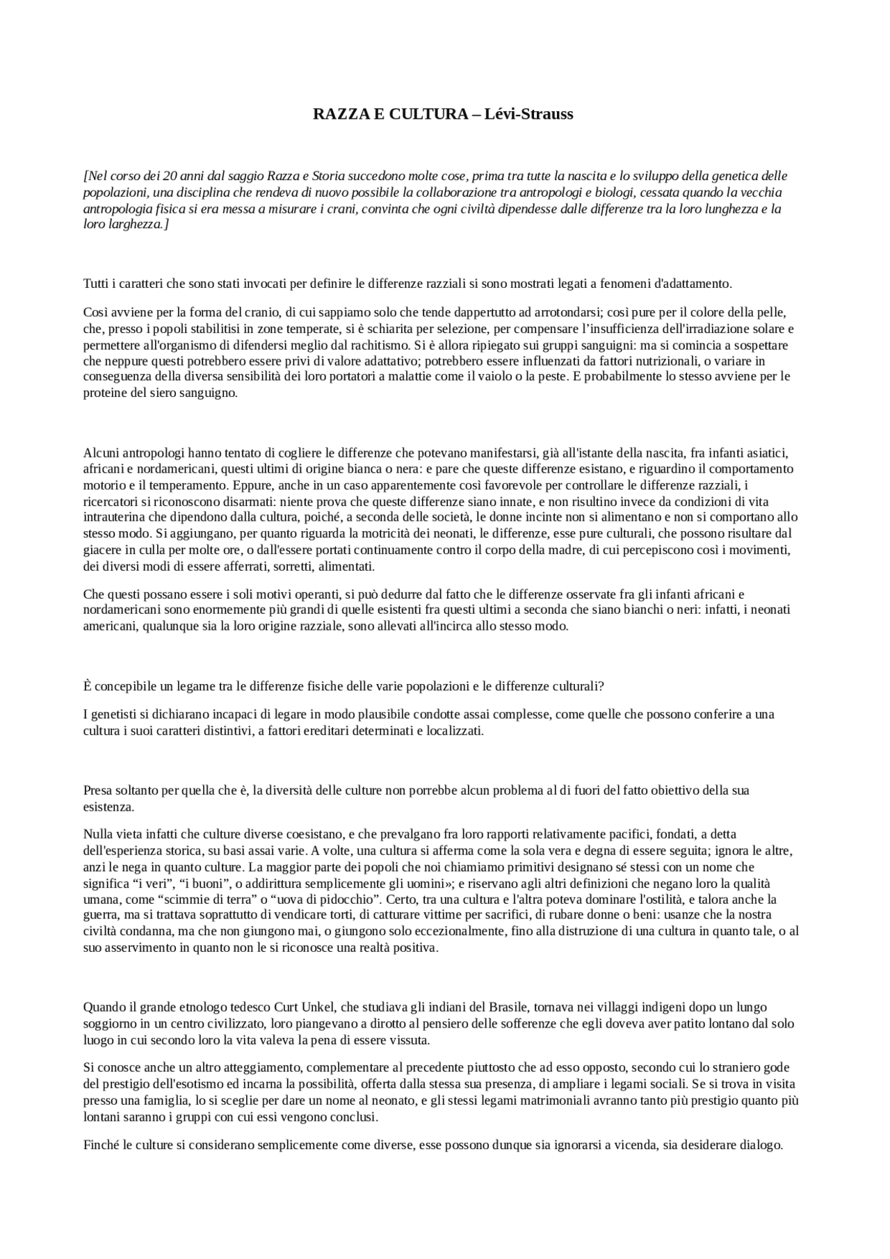 razza e cultura levi strauss
