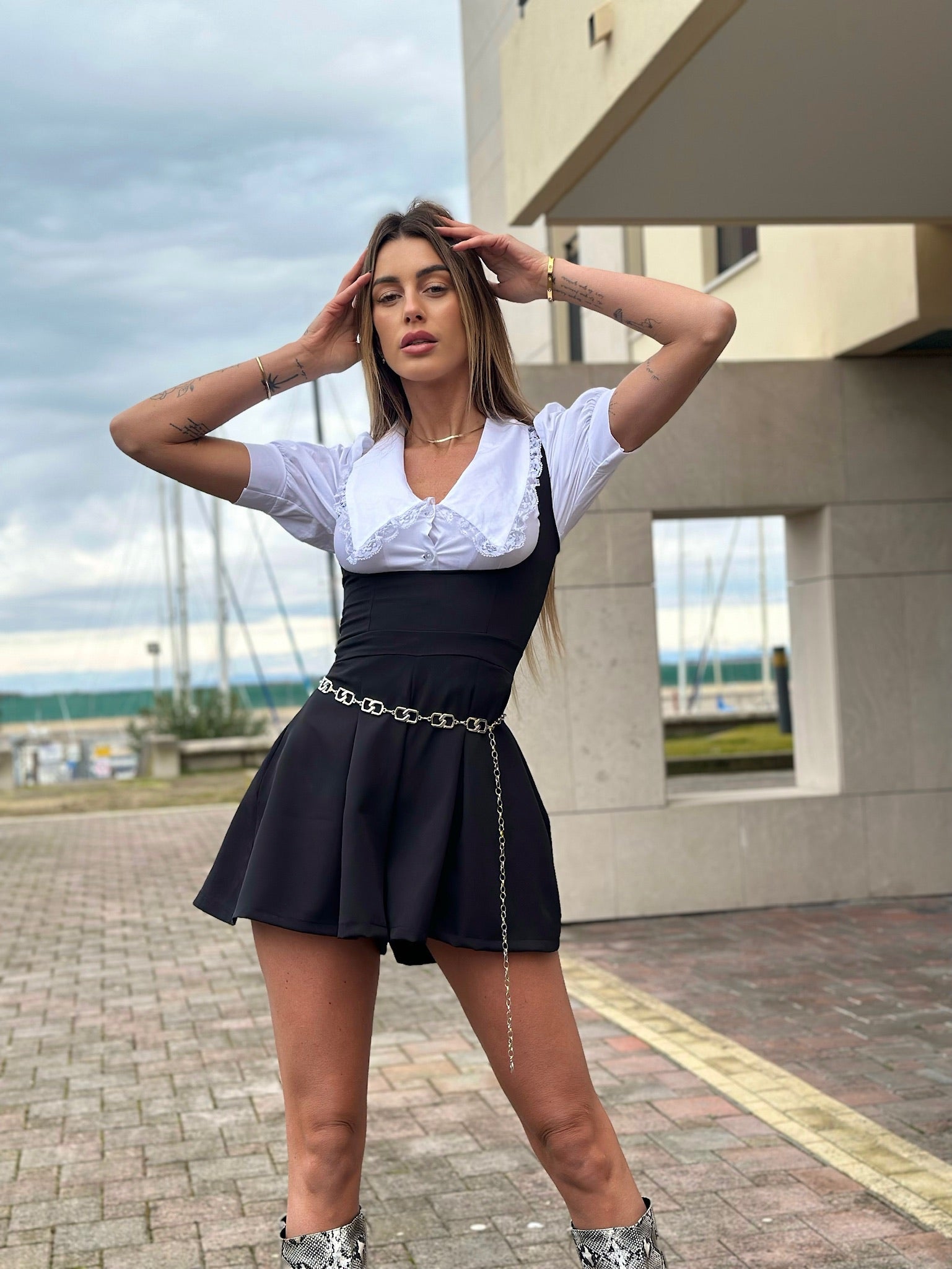 salopette jeans nera corta