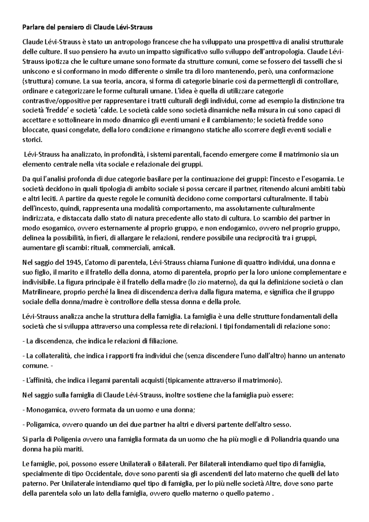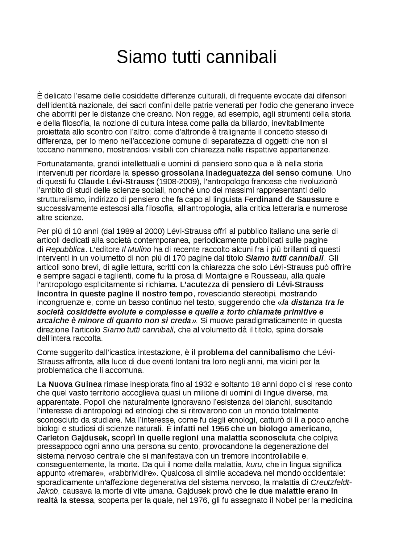 siamo tutti cannibali levi strauss riassunto
