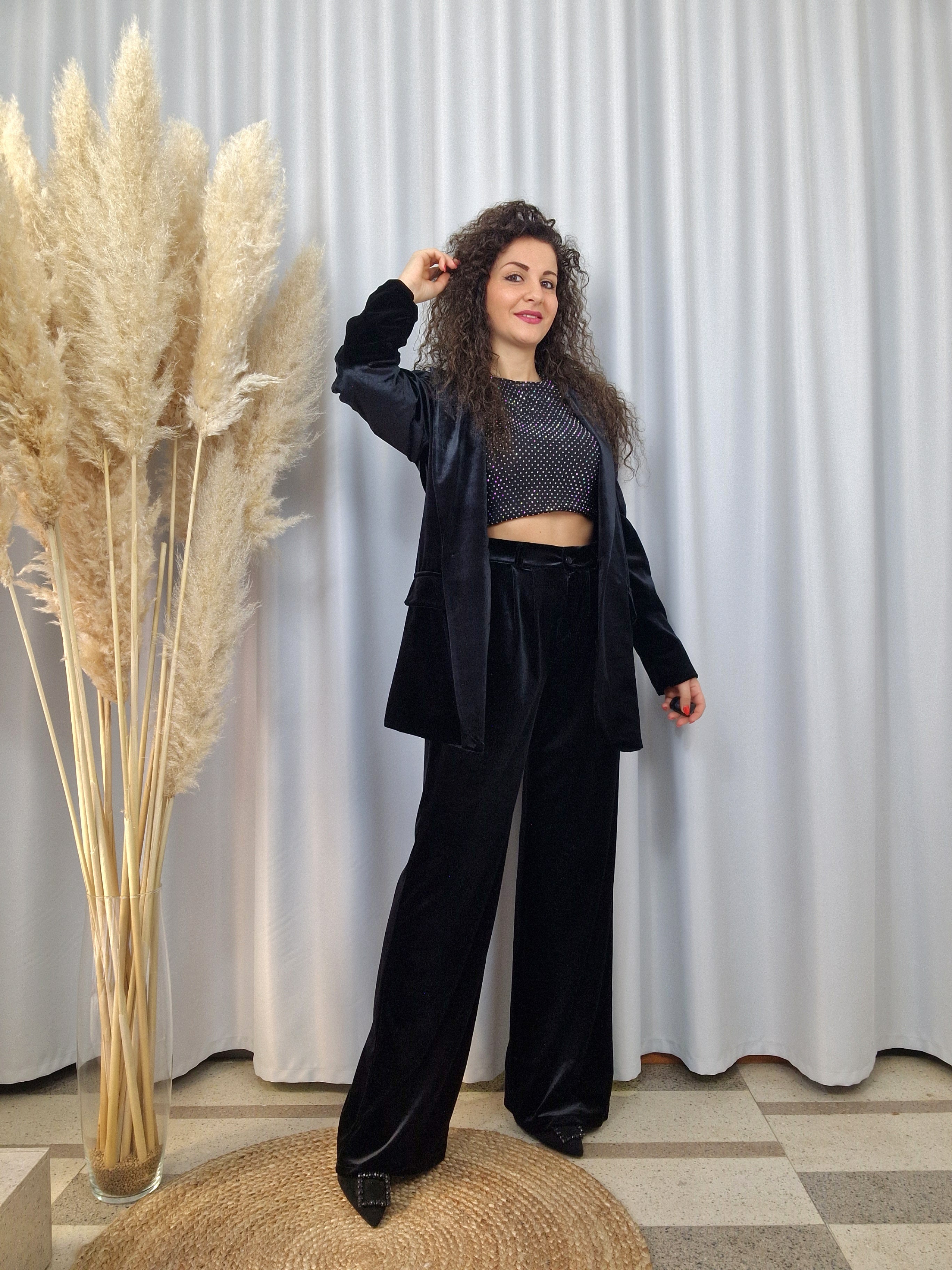 tailleur pantalone di velluto nero