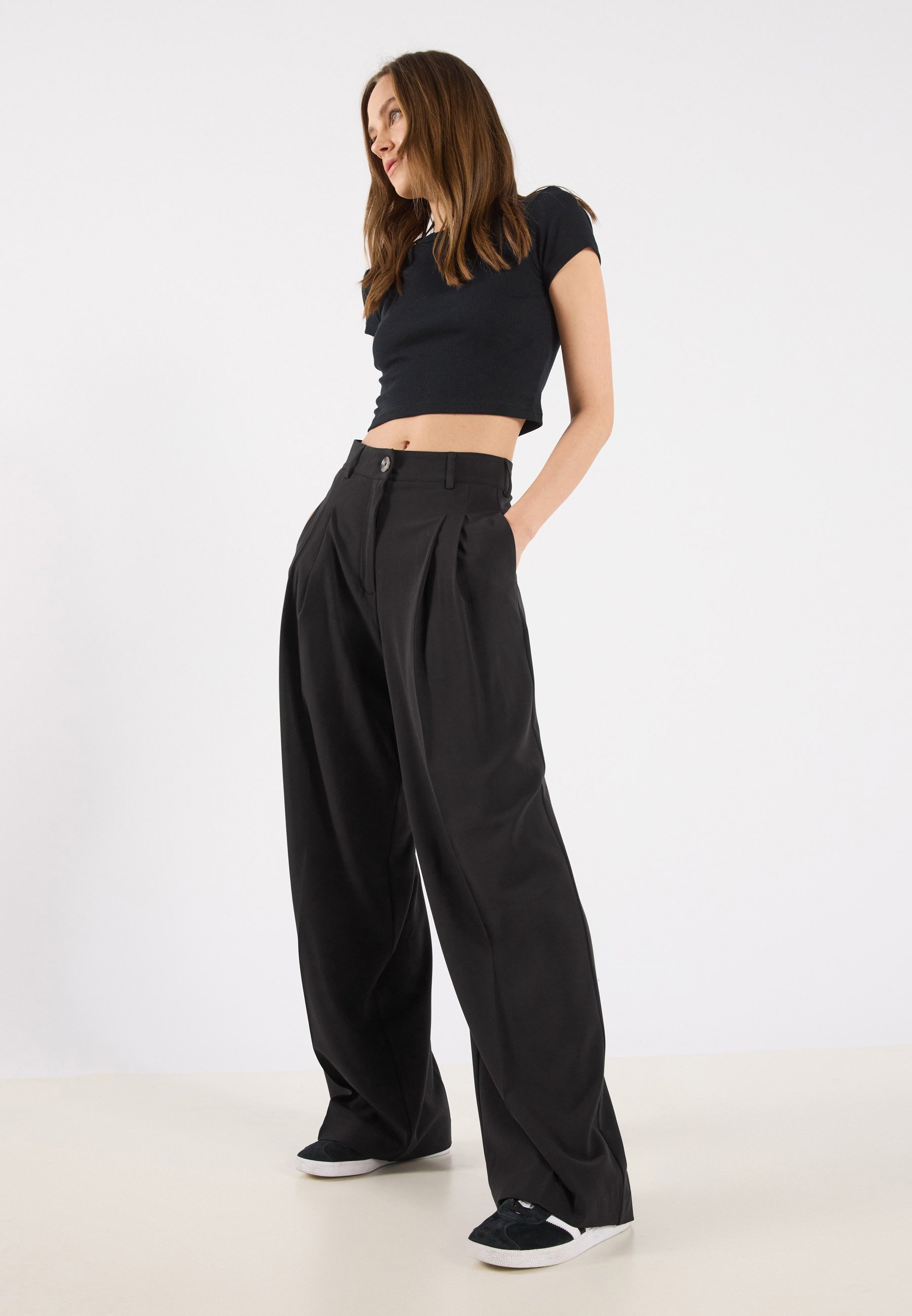 zalando pantaloni neri vita alta