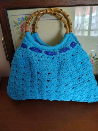 borse all uncinetto con manici di bambu
