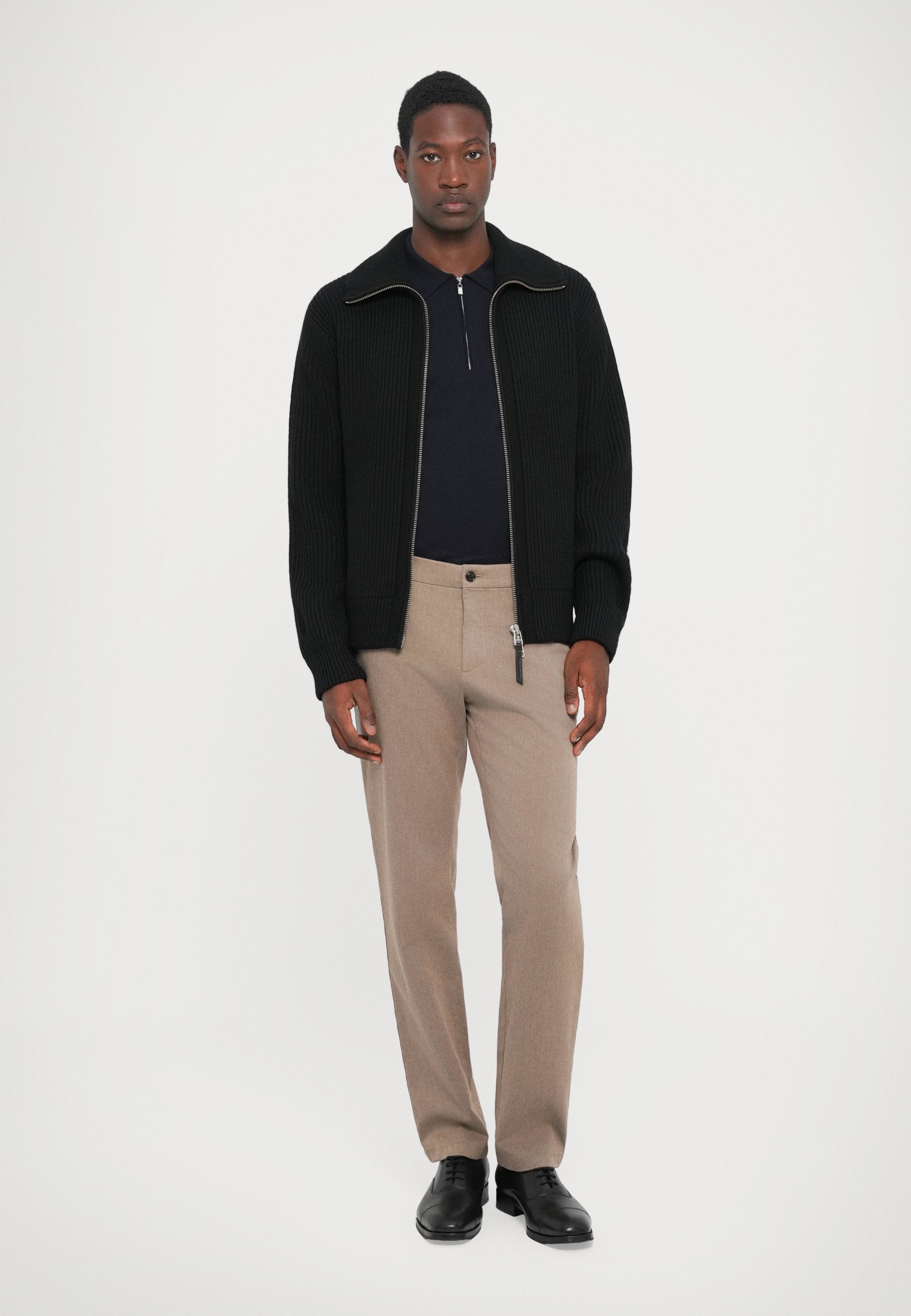 giacca beige pantalone blu
